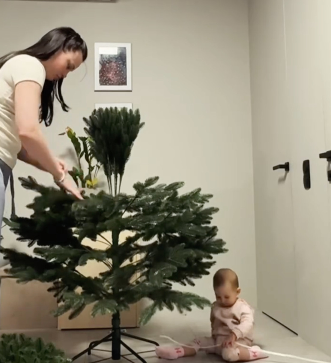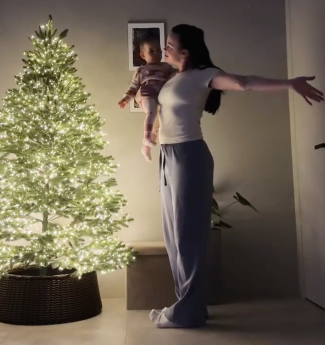 У себе в Instagram матуся опублікувала теплі кадри з дівчинкою, на яких вони разом прикрашали святкову ялинку та бавилися з гірляндами.