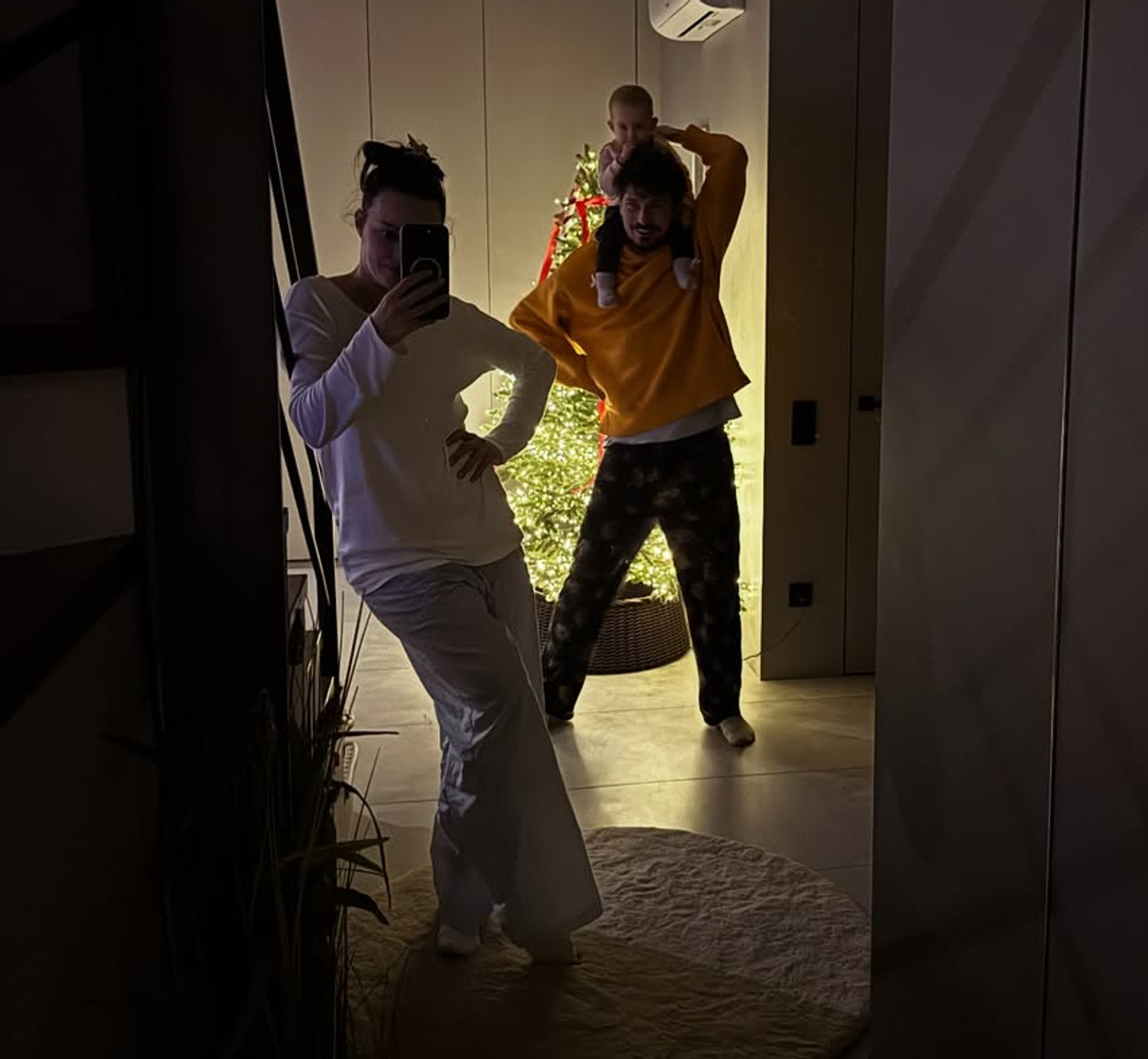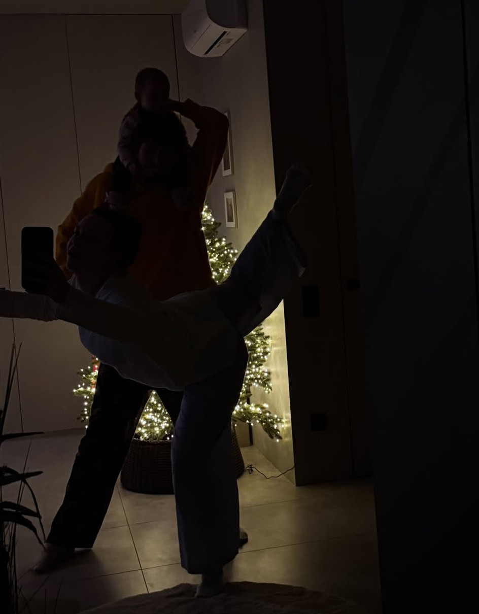 Дружина репера Олексія Завгороднього (POSITIFF), танцівниця Юлія Сахневич потішила новорічними розвагами з їхньою майже 1-річною донечкою Марією.