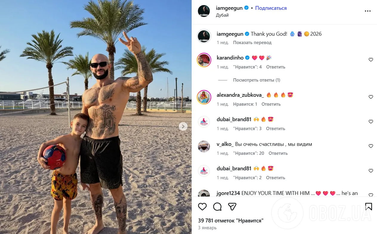 У Дубаї, ОАЕ, новий рік зустрів і репер Джиган – уродженець Одеси, який у 2024 році отримав російський паспорт і публічно агітував голосувати за диктатора Володимира Путіна. Артист викладав відео з сімейного відпочинку, де в шортах і футболці смажив м’ясо на грилі разом із сином. У Росії він уникав гучних скандалів, однак для української аудиторії його позиція однозначно сприймається як зрадницька.