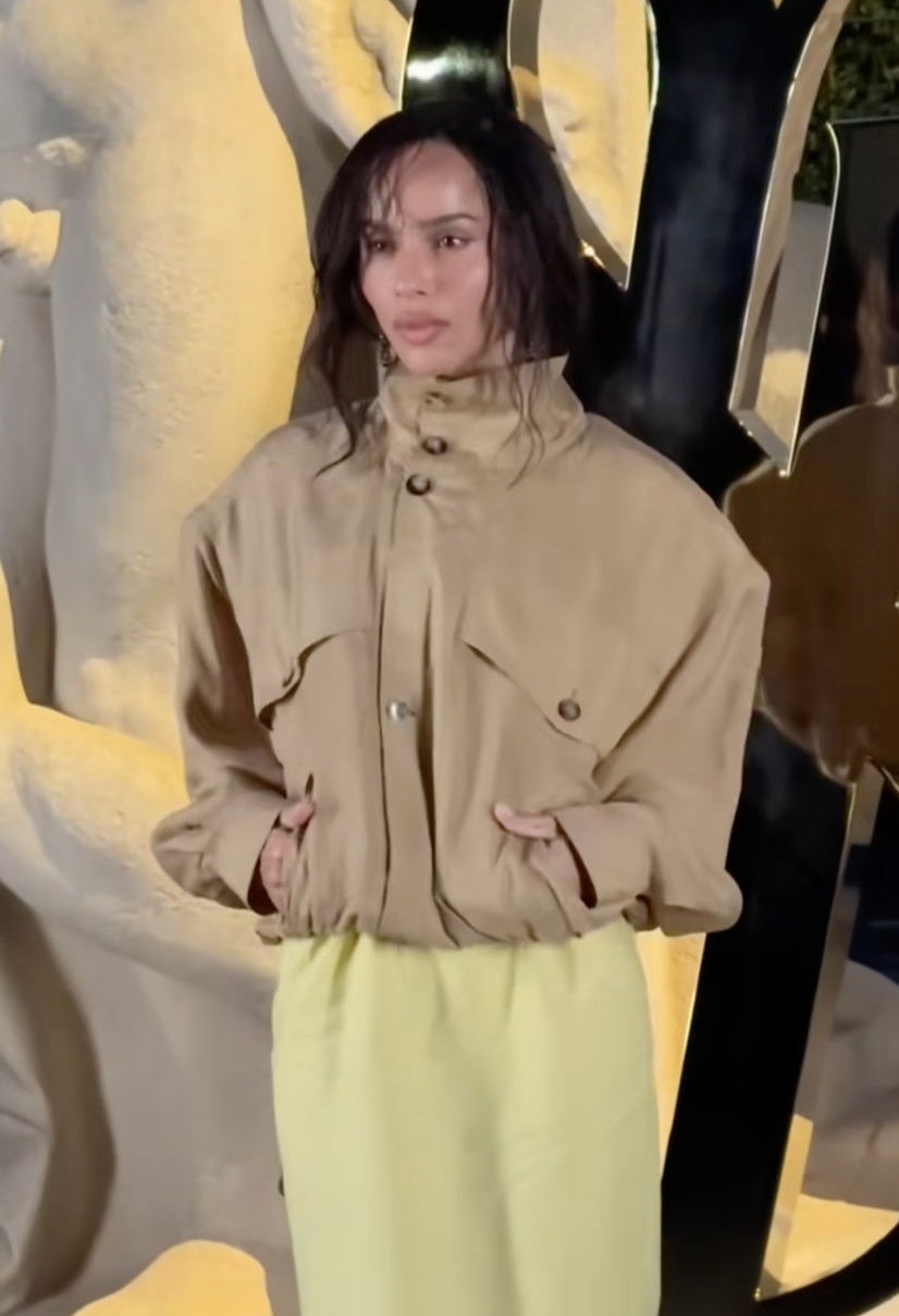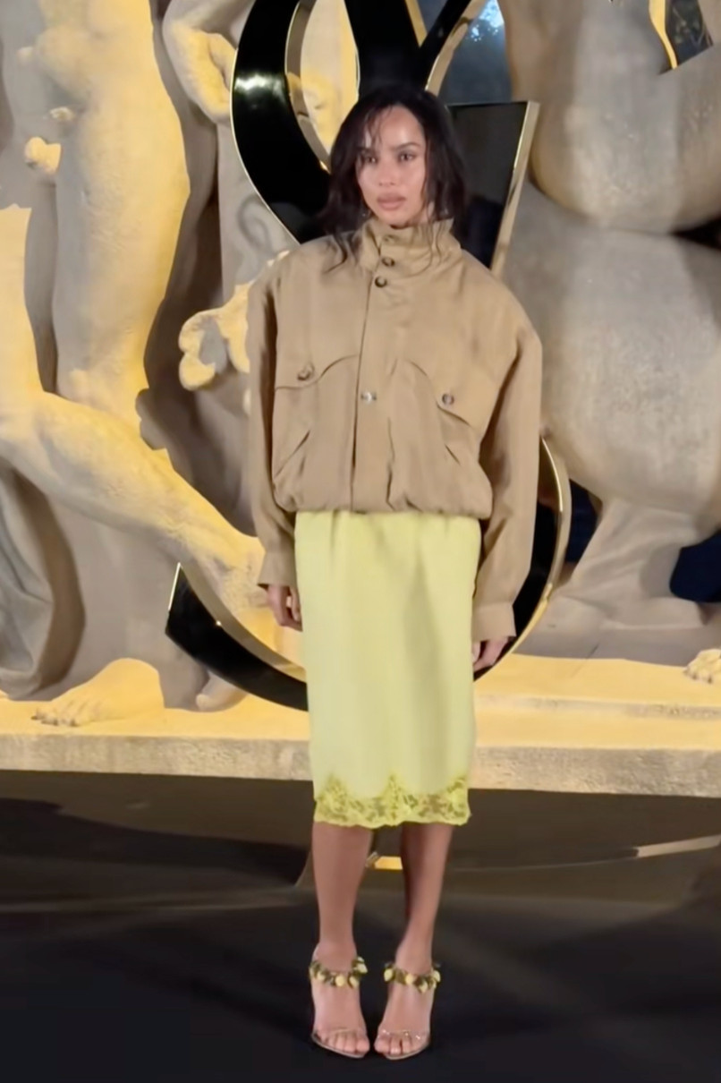 Зої Кравіц показалася на хіднику в міді трендового масляного кольору з мереживними деталями та босоніжках. А зверху вона накинула курточку