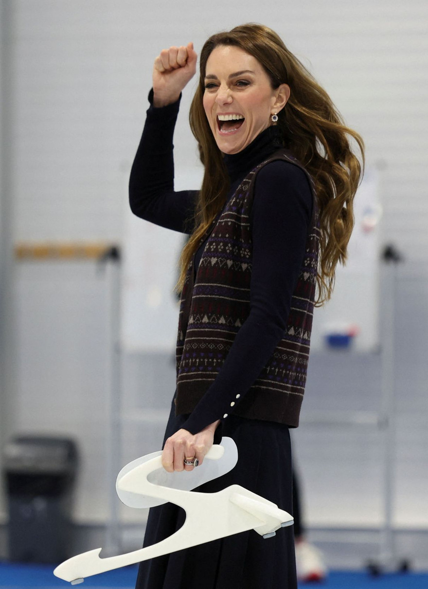 Кейт у сукні та "бабусиному" жилеті з ентузіазмом пограла в керлінг
