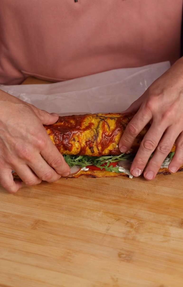 "Готуємо страву, після якої і настрій, і легкість гарантовані. Цей рулет білковий, яскравий і дуже смачний. Без "заборон" для фігури, так ще й із користю", - написав кухар
