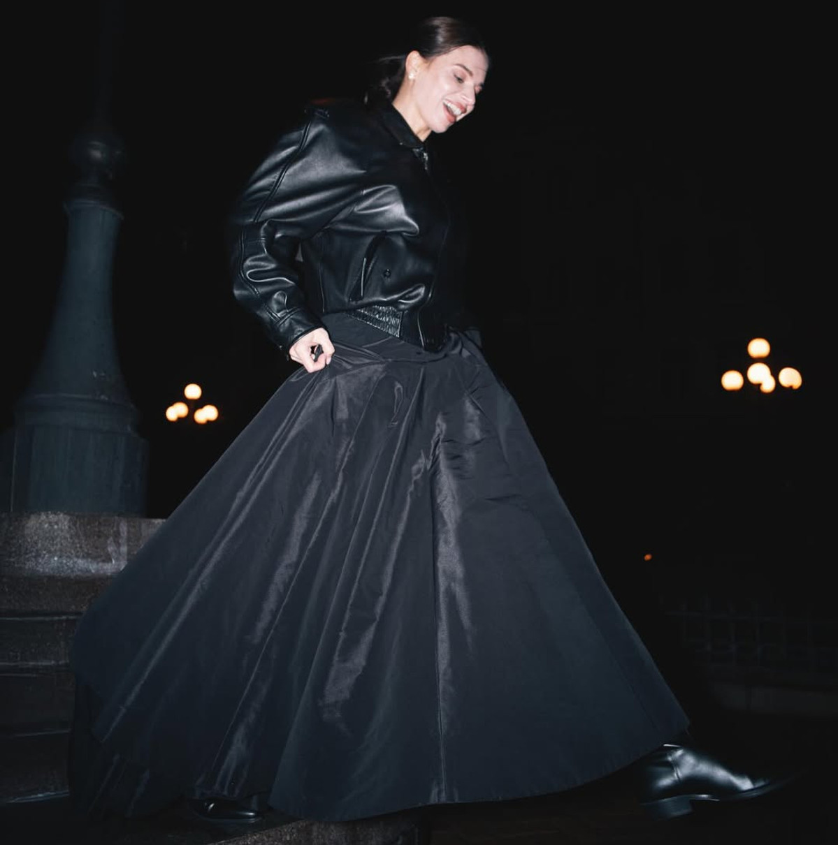 Пишна спідниця та шкірянка вдало гармонували одна з одною