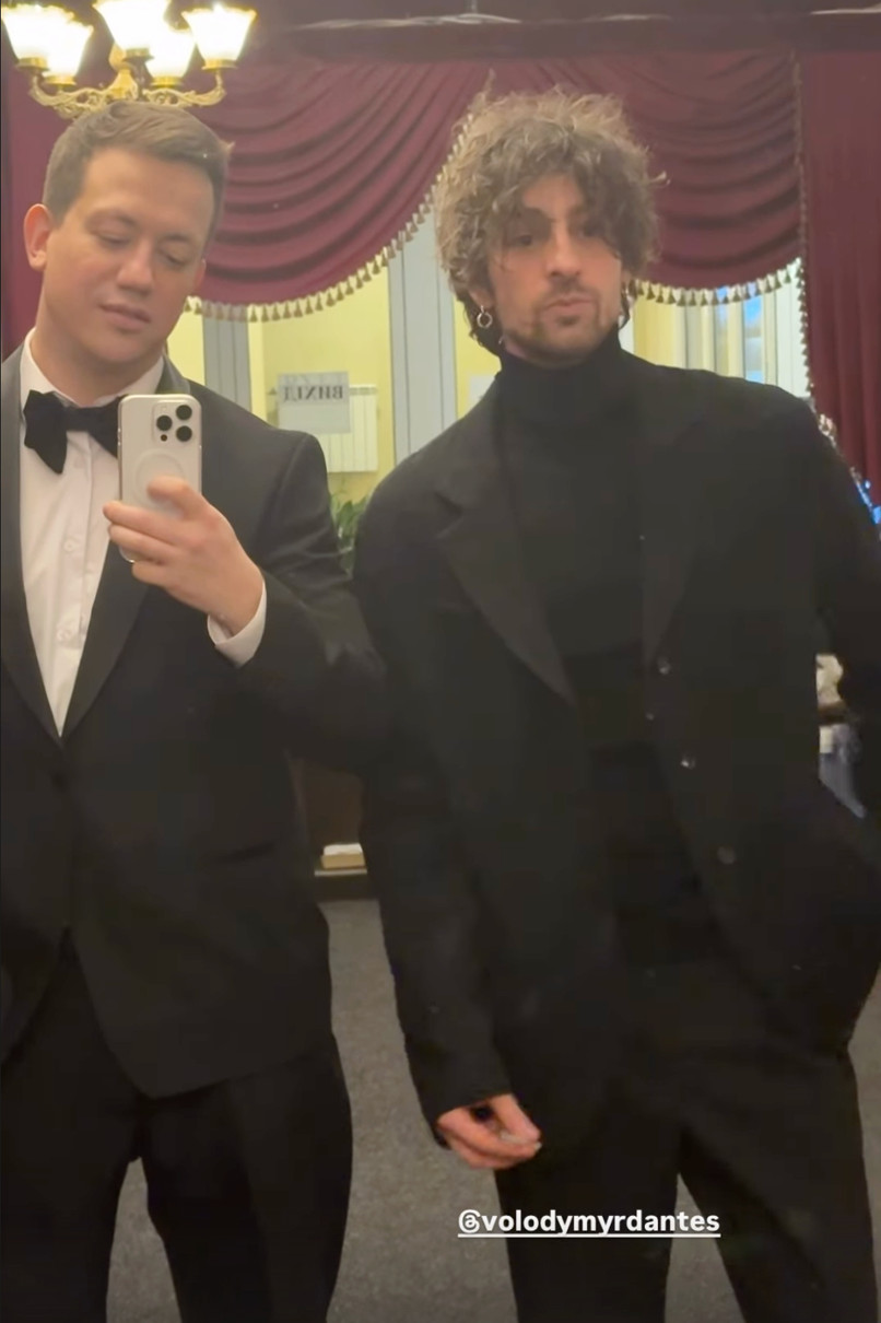 Блогер Олексій Дурнєв у смокінгу і співак Володимир Дантес в чорному костюмі попозували разом