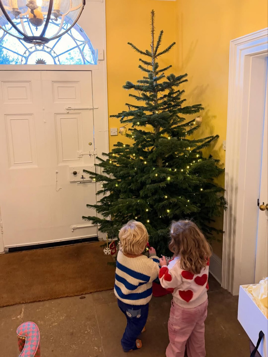 Керрі у своєму Instagram показала фото, як Борис приніс ялинку, як вони її прикрасили та як нею милуються їхні діти.