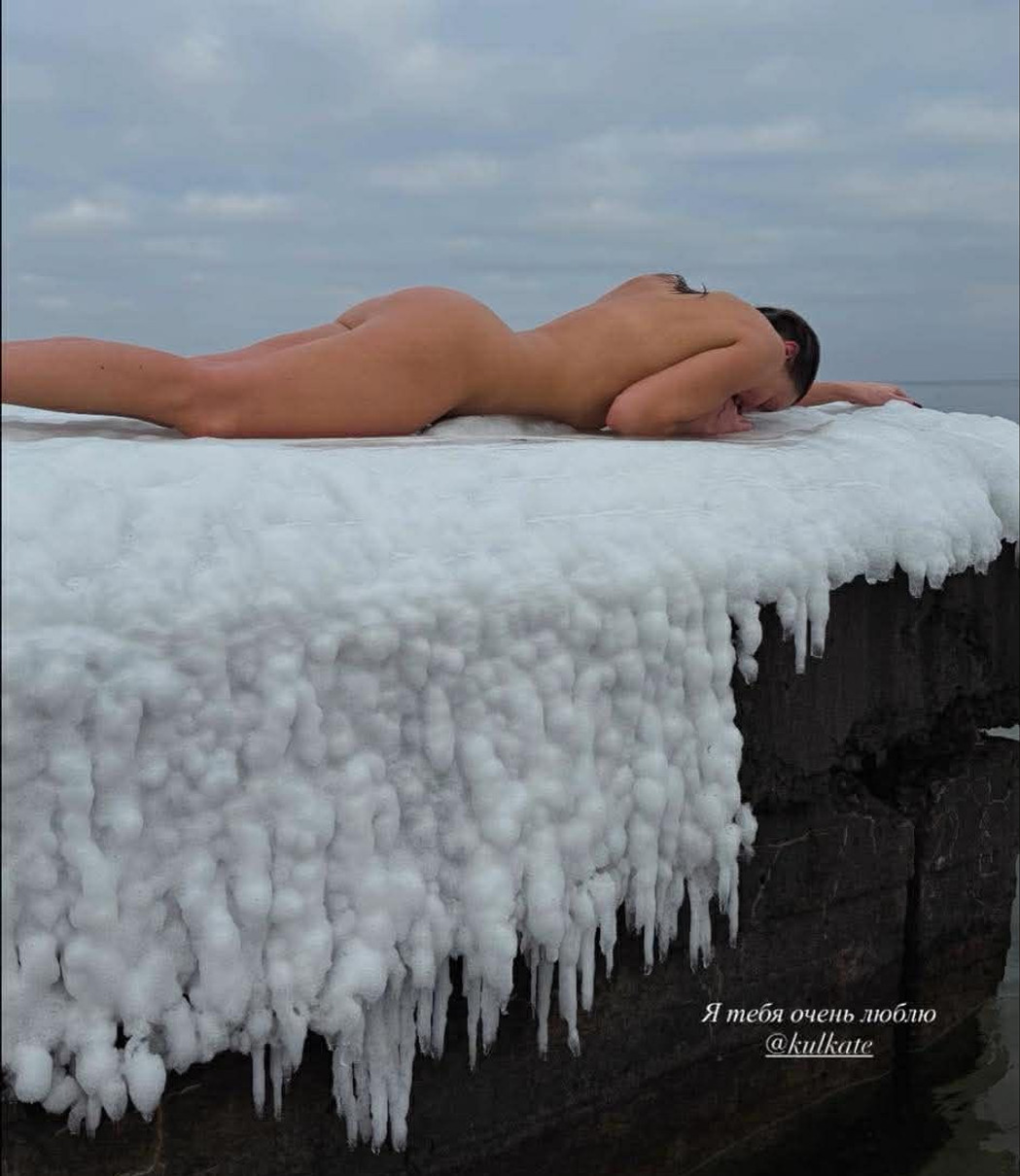 Свою роповідь Єва прикрасила відео, на якому вона абсолютно гола сидить на заледенілому пірсі в Одесі, і підписала його жартома: "Зима 2026. Будь-який українець у ванній".
