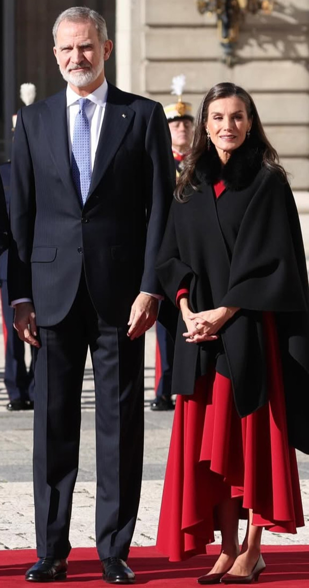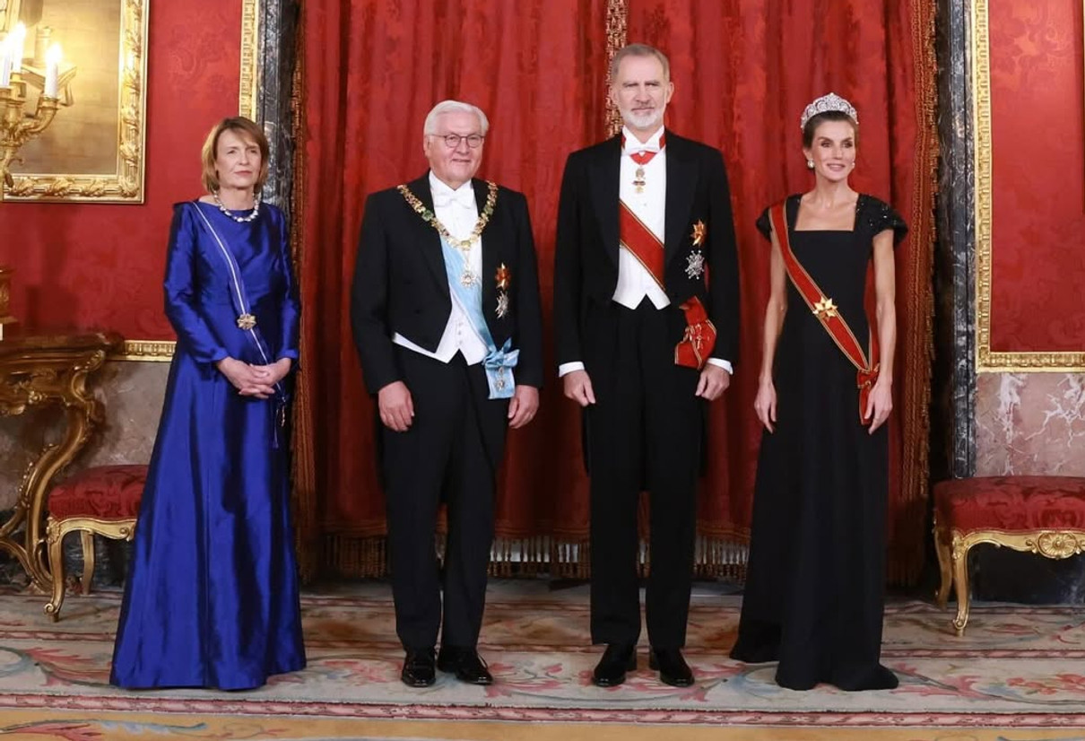 Королева Іспанії Летісія разом зі своїм чоловіком, Феліпе VI привітали президента Німеччини Франка-Вальтера Штайнмаєра та його першу леді Ельке Бюденбендер під час їхнього візиту до Мадриду.