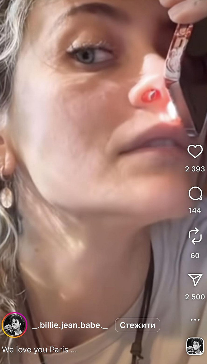 Виявляється, в носовій перегородці 27-річної дівчини внаслідок вживання наркотиків утворилася діра. Періс показала її, підсвітивши ліхтариком телефона. Ролик, записаний нею, шириться в соцмережах.