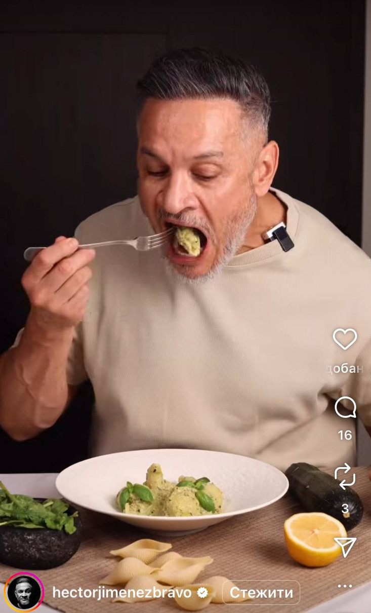 "Вам знадобиться всього кілька інгредієнтів та блендер, щоб отримати ніжну пасту для дуже смачної вечері. Ловіть рецепт цієї пасти від мене)" - написав Ектор.