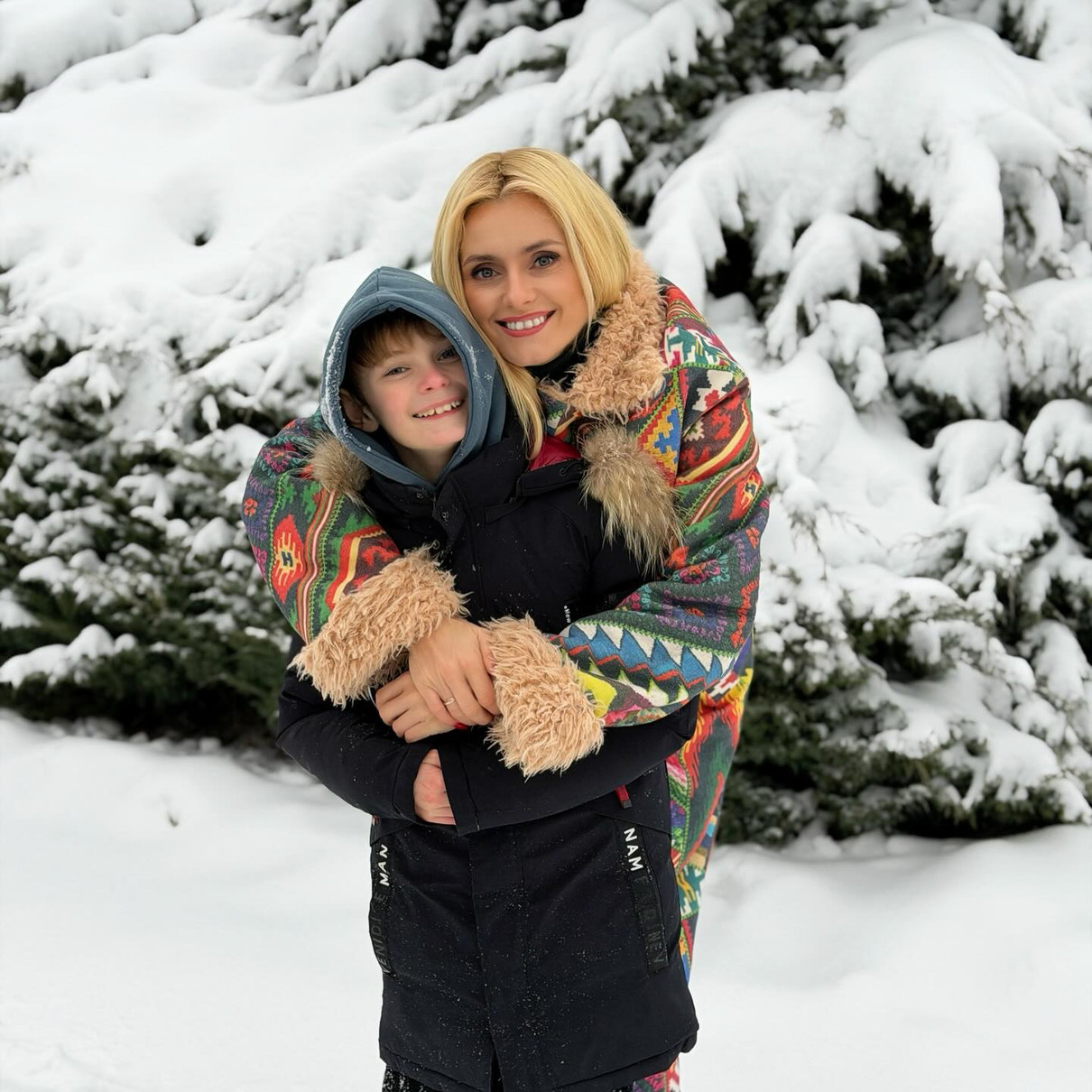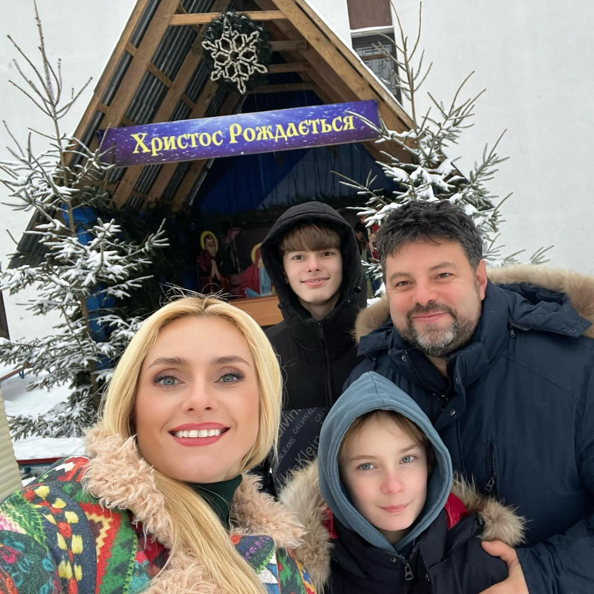 Разом з обома синами та чоловіком зірка пораділа справжній зимовій погоді та наробила милих фото разом на тлі храму Різдва Пресвятої Богородиці УГКЦ на Сихові (район Львова - ред.)