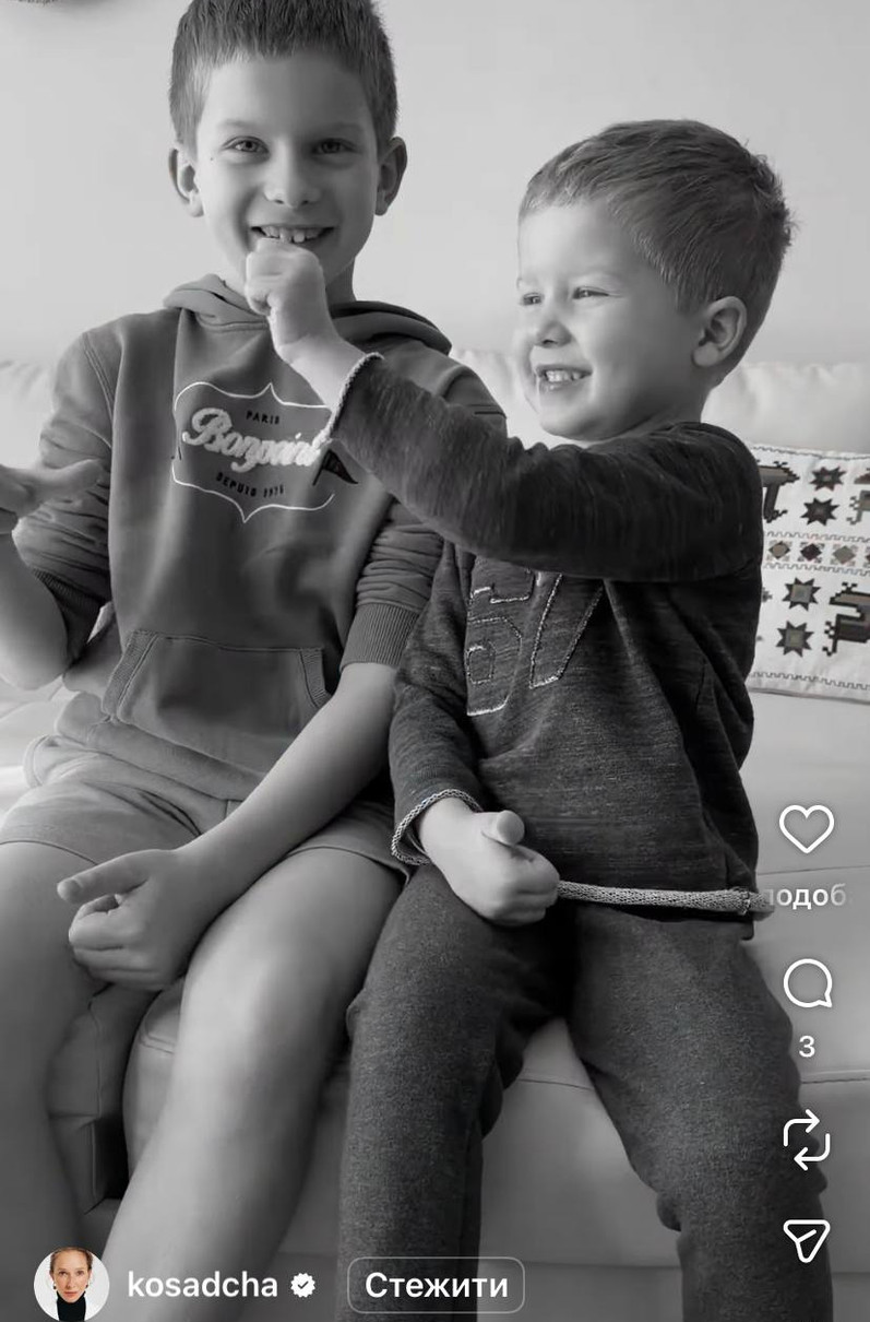 "Зараз той час, коли діти рятують від всіх думок і всього навколо. Поки знімали, насміялися усією сім’єю. Виявляється, хлопці дуже добре знають один одного", - написала Осадча