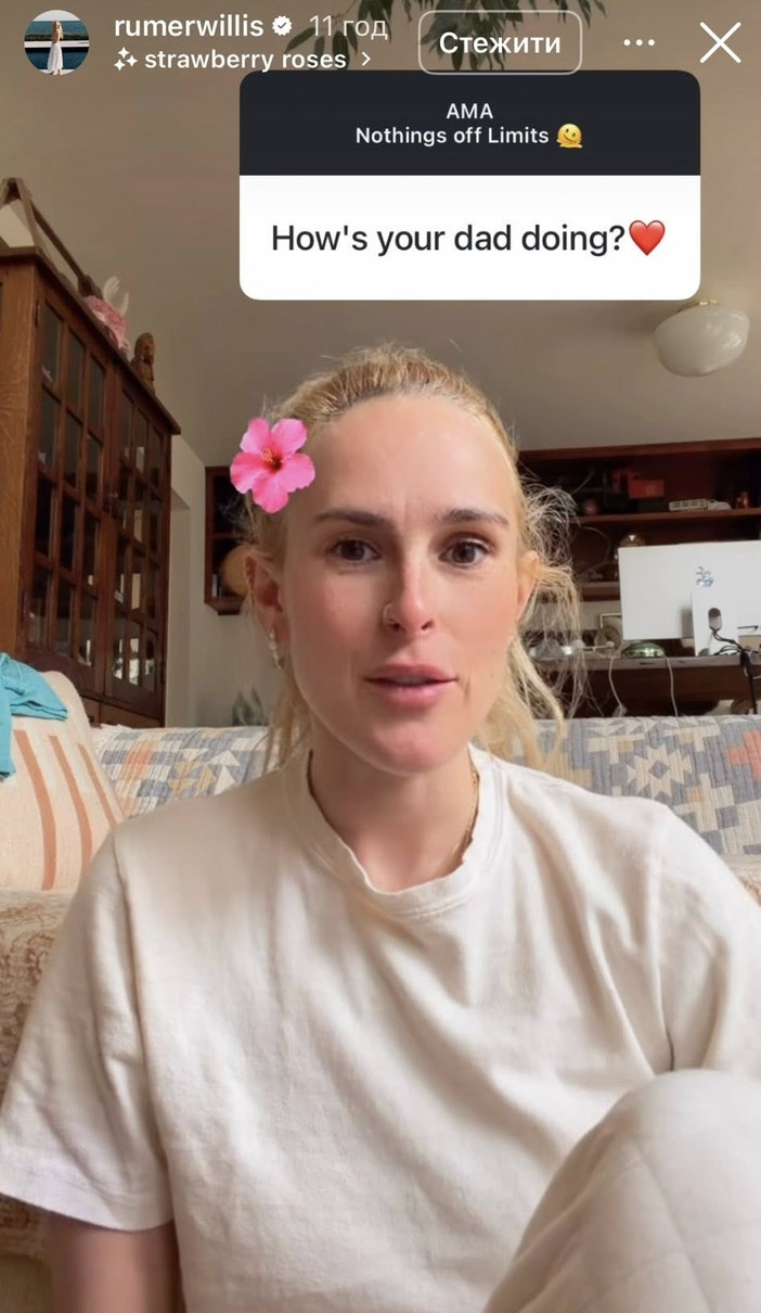 Про це розказала його старша донька від акторки Демі Мур, Румер Вілліс.