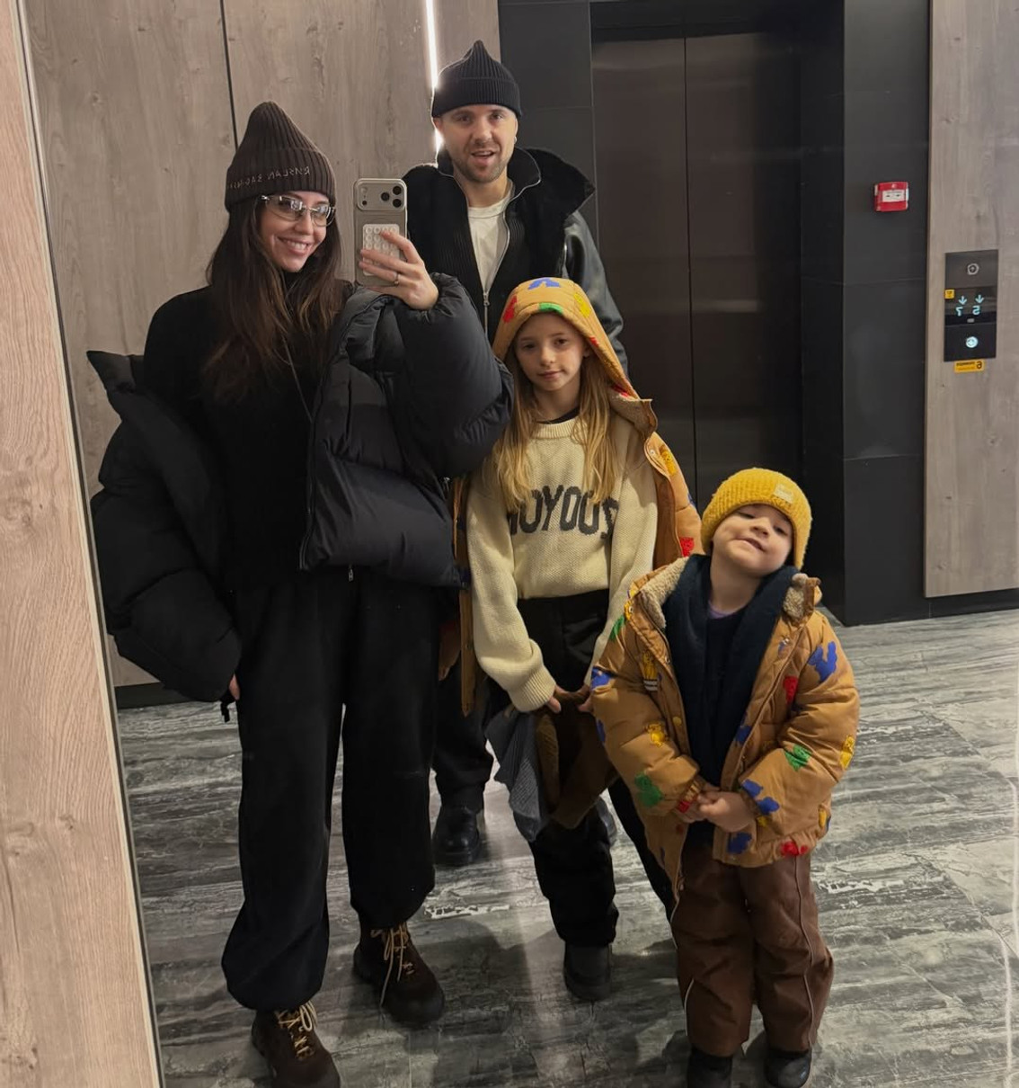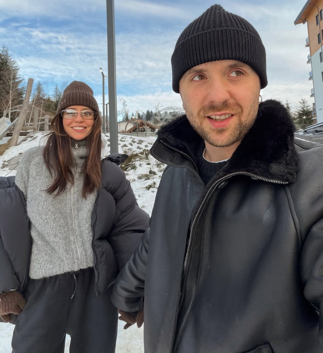 35-річна співачка Надя Дорофєєва почала січень з сімейного відпочинку в Карпатах разом із чоловіком, ресторатором Мішею Кацуріним та його дітьми.