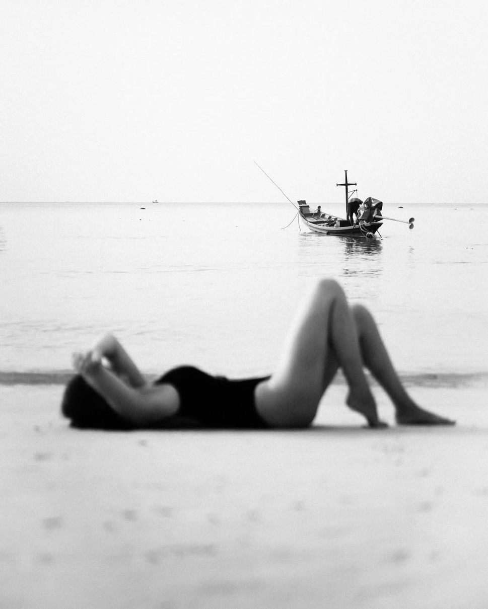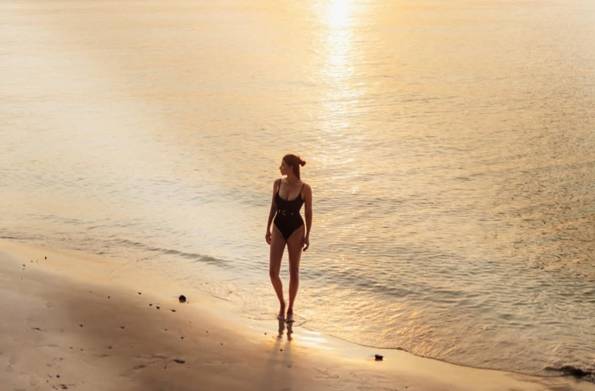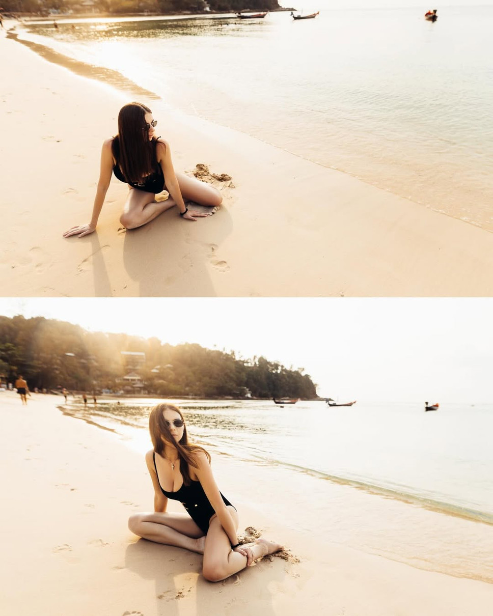 У своєму Instagram обраниця спортсмена показалась у цільному купальнику чорного кольору з ремінцем на пляжі острова Пханган.