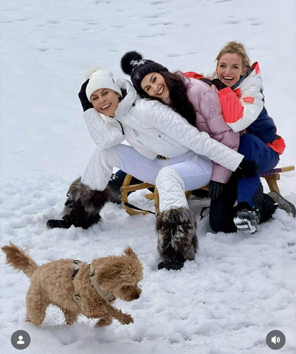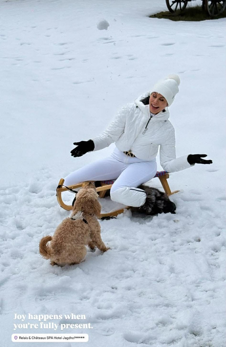 Також Наталія вже встигла покататися та попозувати на санчатах. А компанію їй склав милий песик.