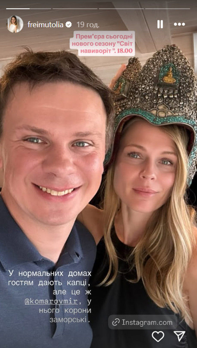 Оля завітала в гості до Дмитра та поділилася фото, на якому позує коло Дмитра у "заморській короні".