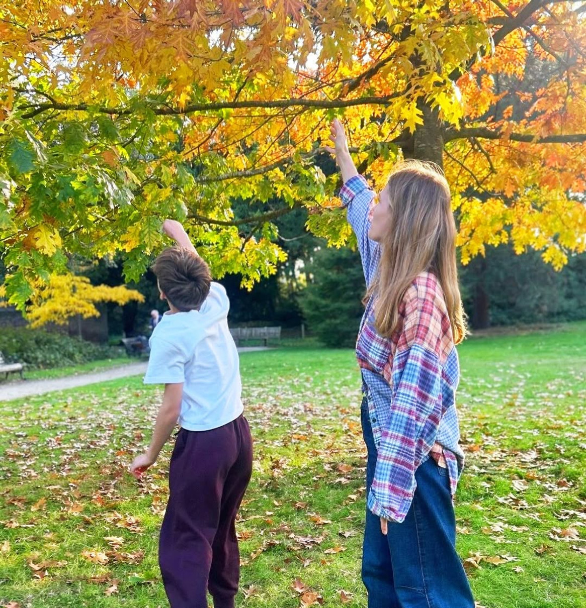 Оля у картатій сорочці та джинсах прогулялася з нащадками осіннім Лондоном. На одному із фото Фреймут ласкаво пригорнула до себе донечку, яка була одягнена у заквітчану сукенку., а на іншому - разом із сином любувалася розглядала золотаві дубові листочки.