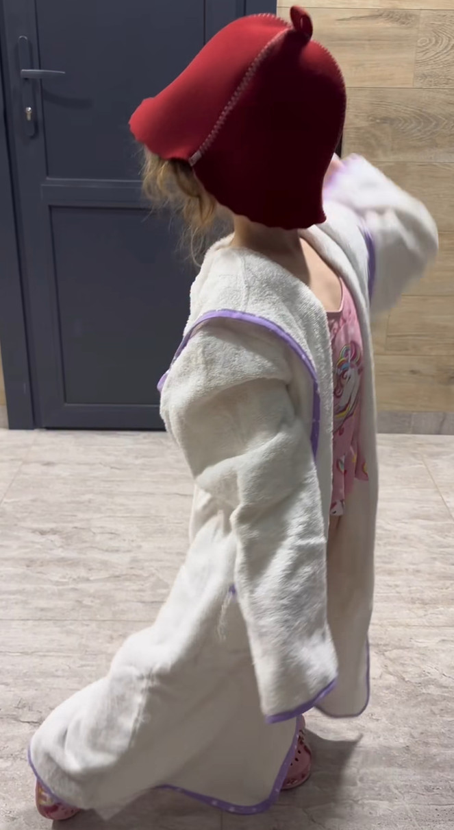 І кумедно пробіглася кімнатою з "модним" аксесуаром на голові