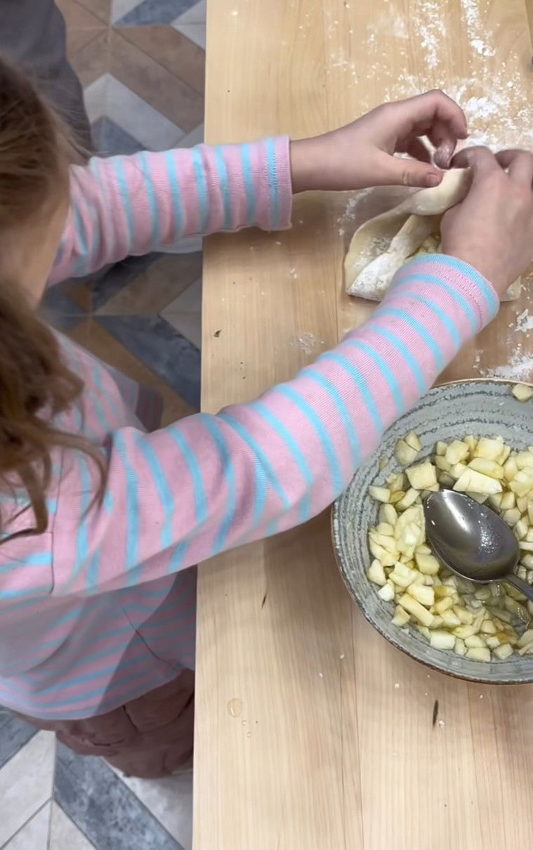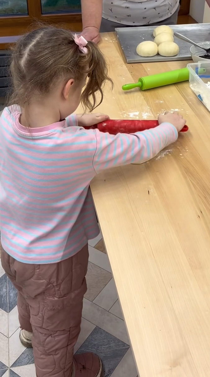 У крихітки, яка впевнено стояла на стільчику, вийшли запашні булочки