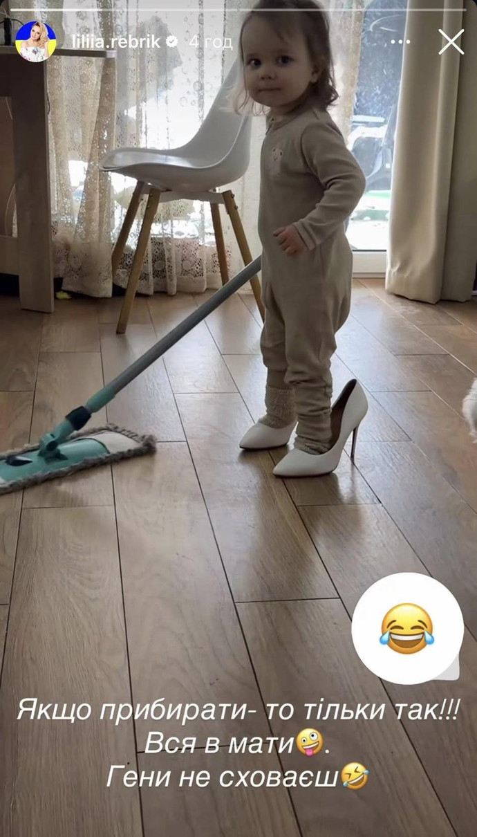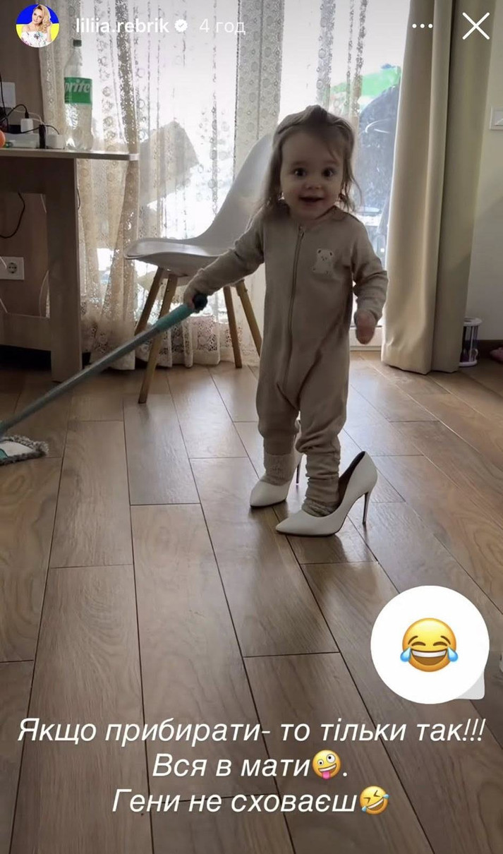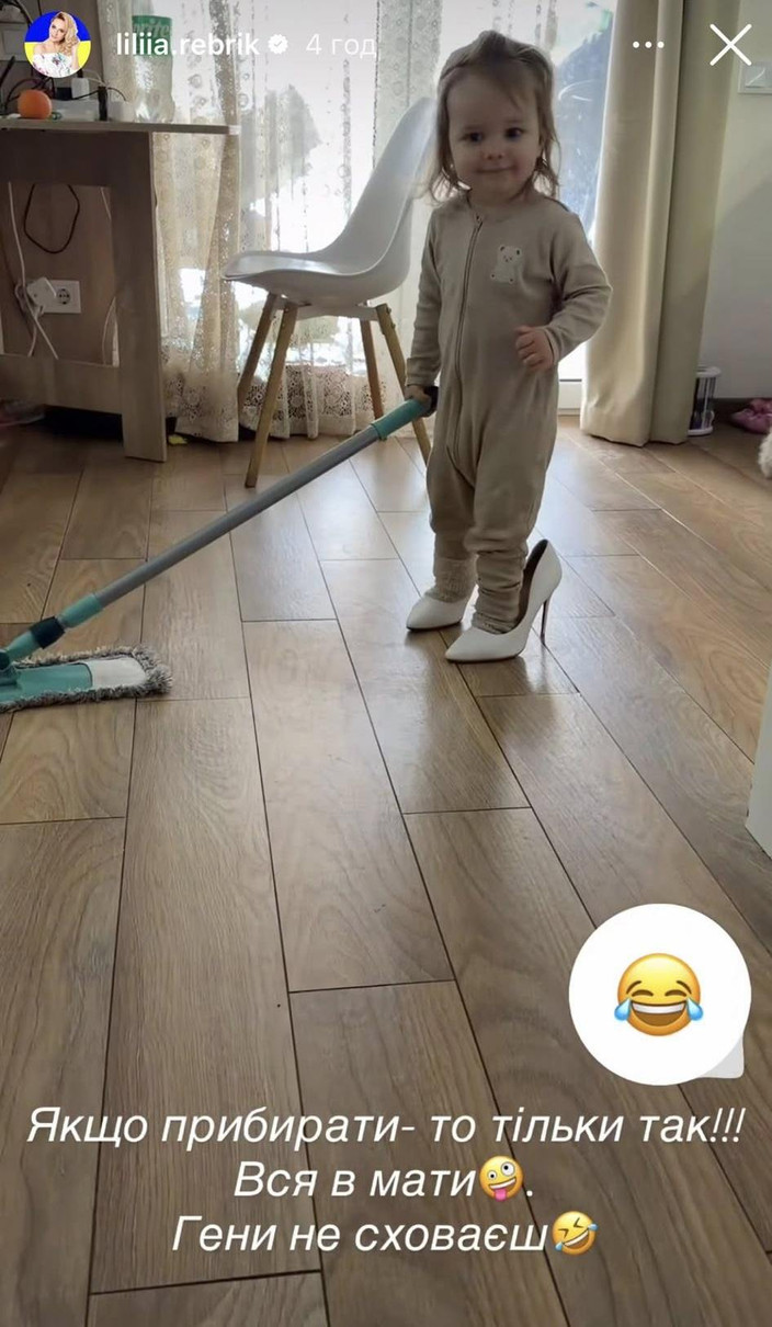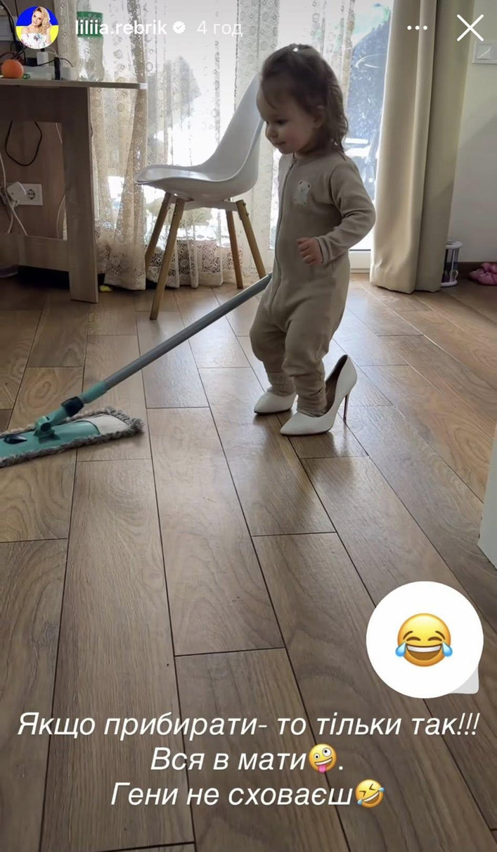 Як кумедне дівча "прибирає" в хаті, влізши у туфлі на підборах, батьки зняли на відео. Ліля поділилася ним у Insta-сторіс.