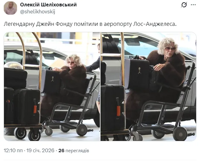 Варто зазначити, що використання крісла колісного для Джейн Фонди не є поодиноким випадком, хоча на публічних заходах вона ходить на ногах. У червні минулого року акторку вже бачили в кріслі колісному під час пересування аеропортом Сіднея. У подібних ситуаціях йдеться про допоміжний засіб для пересування на великих відстанях у терміналах, що часто використовується людьми поважного віку, а не про підтверджені серйозні проблеми зі здоров’ям.