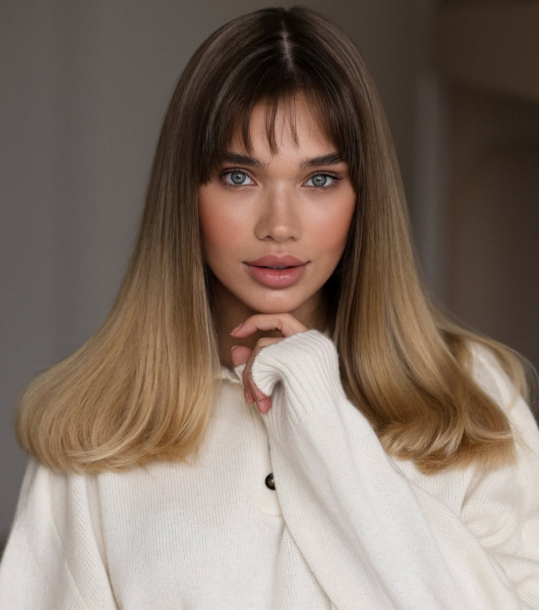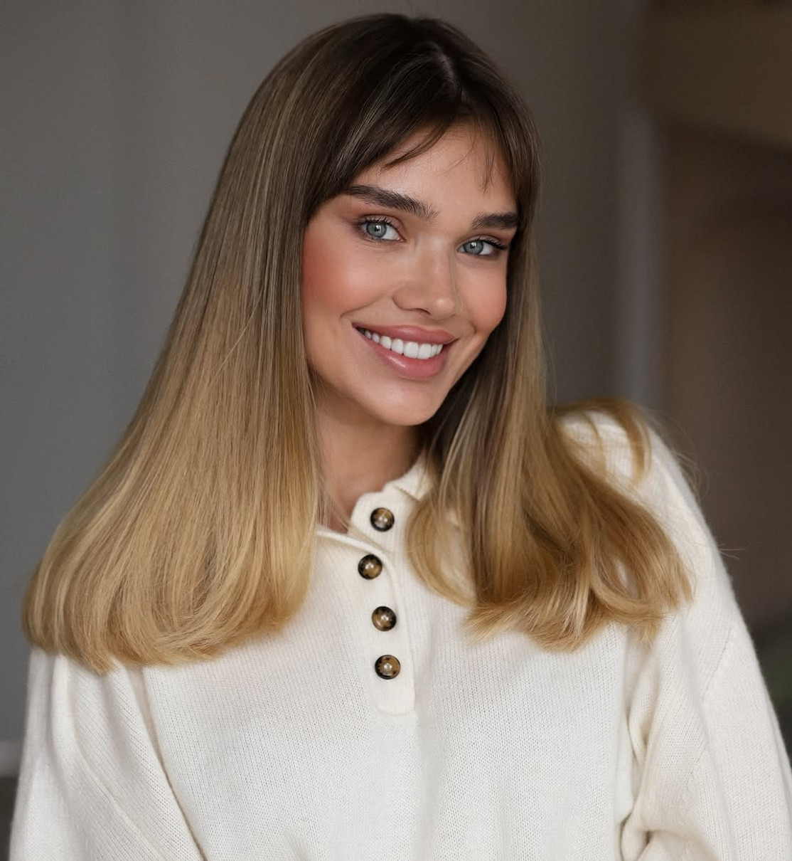 Трендовим чубчиком Саша вдало доповнила свій новий колір волосся