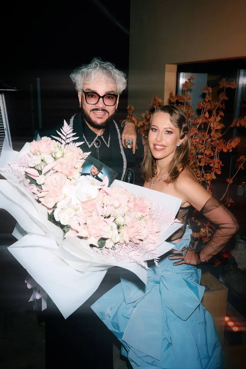 Свято пройшло в одному з московських ресторанів, де столи ломилися від делікатесів, а для гостей співала уродженка Мукачево Лоліта Мілявська. На заході з’явилися пропагандисти Глюкоза, Поліна Гагаріна, Кіркоров й інші російські "зірки". Навіть син Собчак Платон прийшов розділити мамин "день театру".