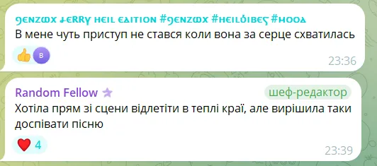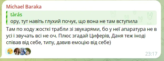 "Це ніби не дуже чисто заспівано, але емоційно мене рознесло просто. По емоційному навантаженню це її найкращий виступ, я аж сльозу пустив".