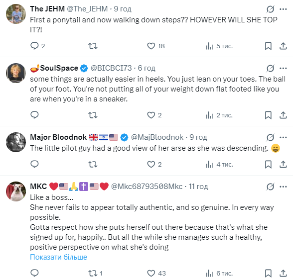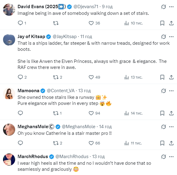 43-річна майбутня королева у витонченому сірому костюмі та туфлях на високих підборах здійснила, здавалося б, неможливе – безпомилково спустилася задом наперед крутими переносними сходами літака. Відео цього моменту швидко розлетілося мережею.