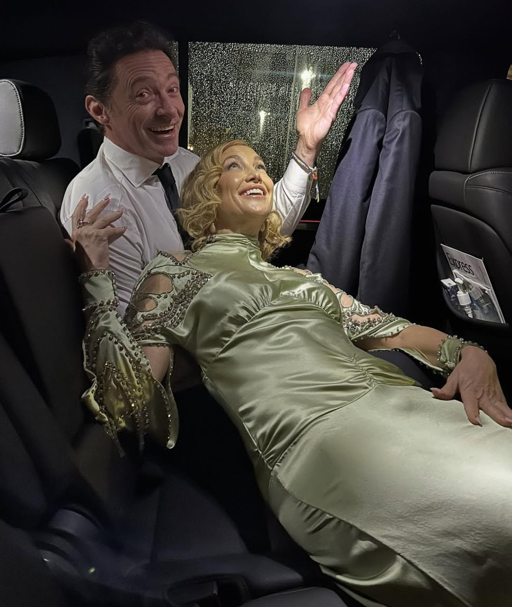 Також вона опублікувала кумедне фото, на якому показала свою поїздку на хідник. У машині Кейт прилягла на свого колегу, австралійського актора Х'ю Джекмана і написала, що завдяки його допомозі, матеріал її одягу не пом'явся.