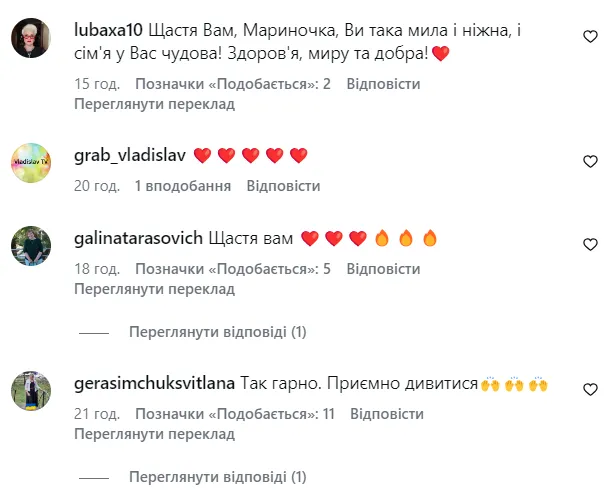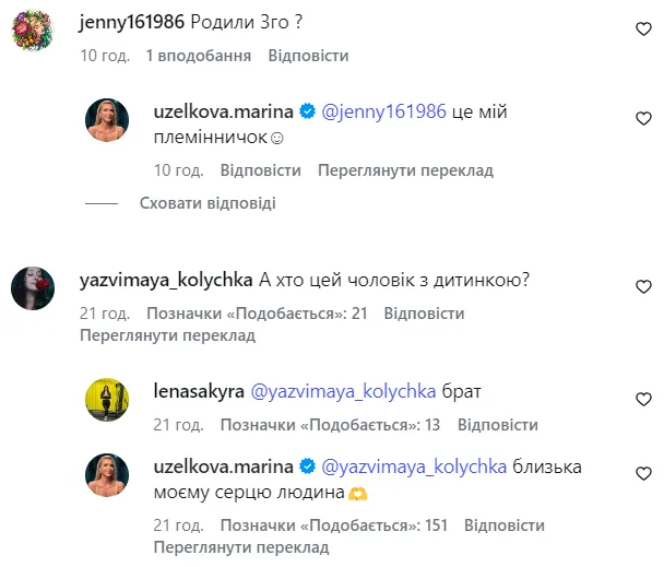 У коментарях підписники почали ставити запитання, зокрема про дитину та особу чоловіка. На питання "Народили третю дитину?" Боржемська відповіла, що це її племінник.