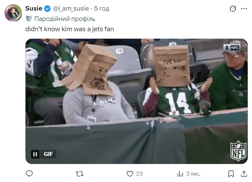 Дехто відзначив, що Кардаш'ян, можливо, наслідує епатажний стиль свого колишнього чоловіка. Каньє Вест ще на початку 2024 року з’являвся публічно в чорній тканинній масці, яка повністю закривала його обличчя. Репер тоді підтримував друга, музиканта Чарлі Вілсона, під час вручення йому зірки на Алеї слави. Вест також був одягнений у шкіряну куртку, потерті штани та гумові черевики – і привернув увагу не менше, ніж тепер його колишня дружина.