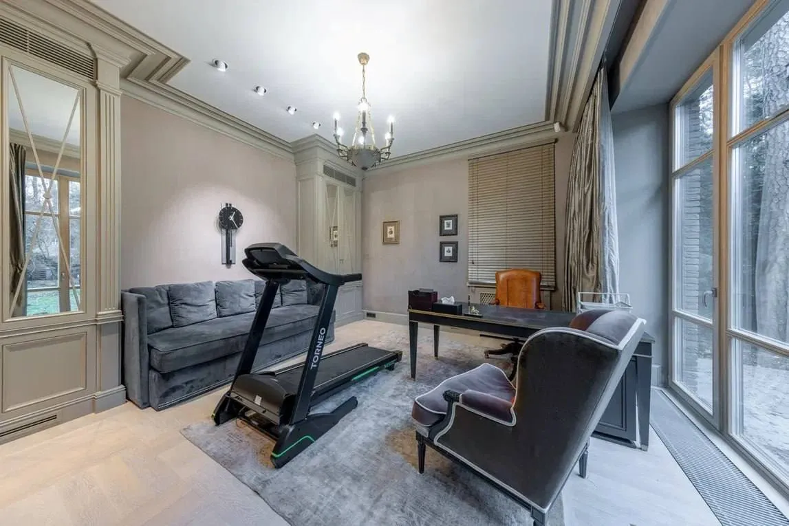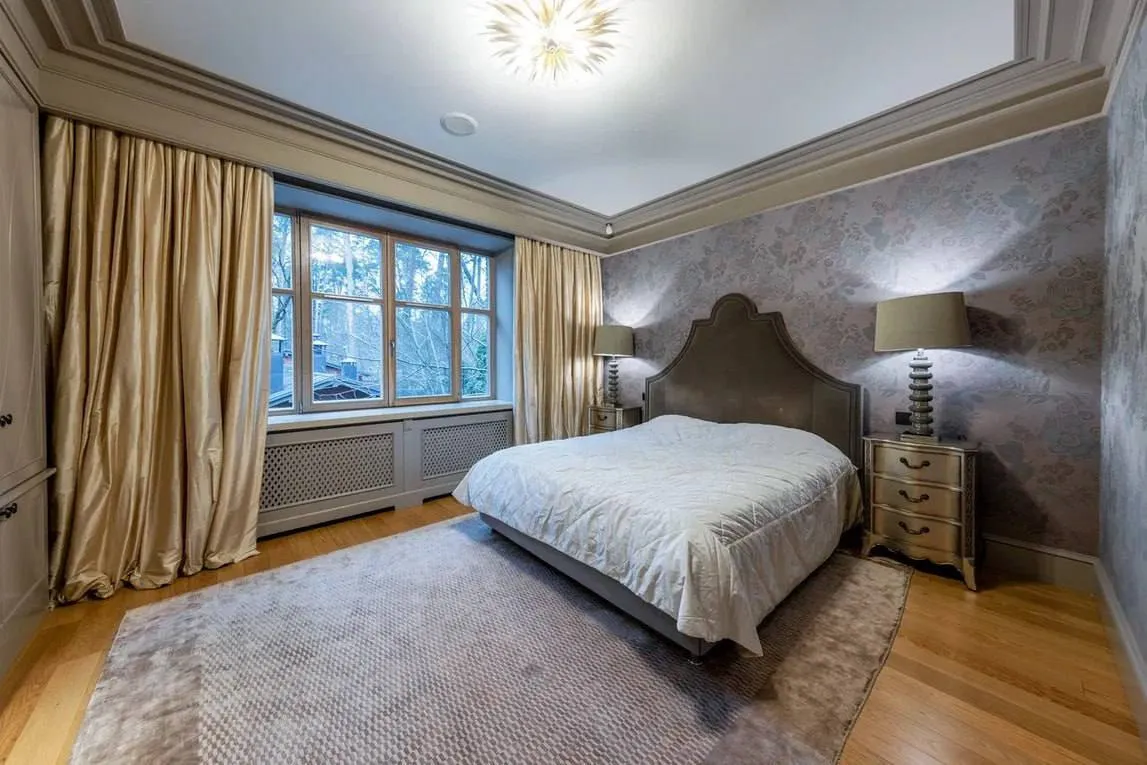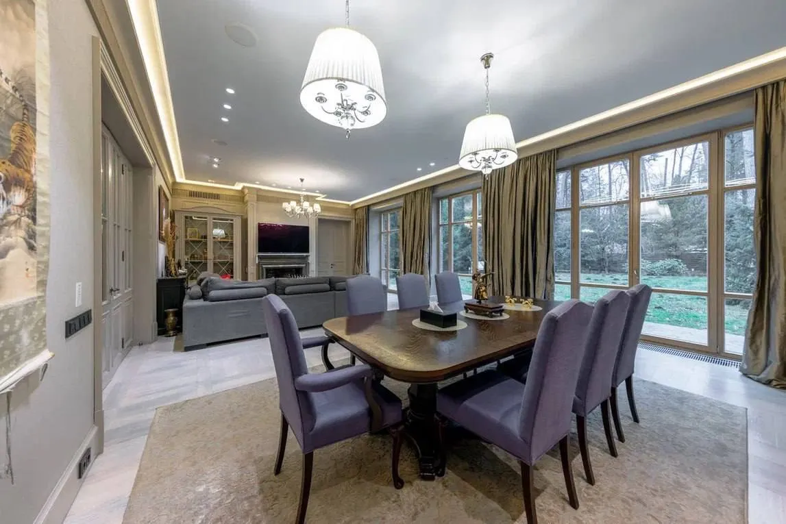 Оголошення про продаж оприлюднила російська рієлторська компанія. У ньому будинок описують як "втілення гармонії природи й сучасного комфорту" – серед соснового лісу. Площа ділянки становить 15 соток, сама ж нерухомість розташована на закритій території з охороною.