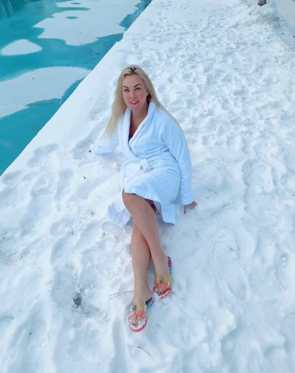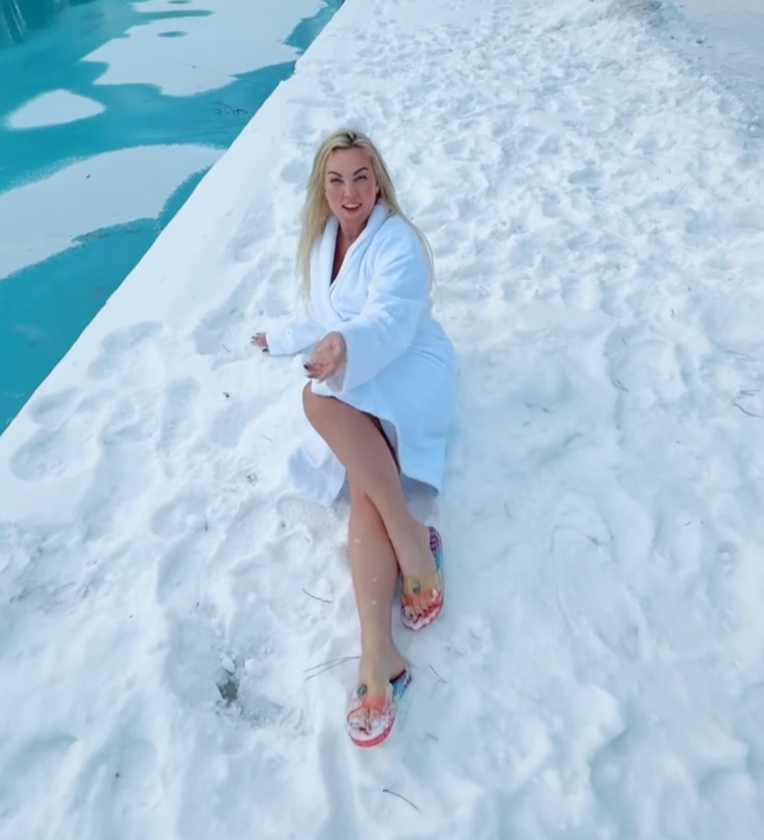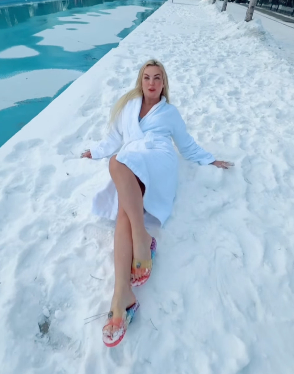 В Instagram знаменитість опублікувала ролик, в якому з голими ногами та у самому халатику позувала на снігу коло басейну та співала свій трек "Ти ловиш кайф".