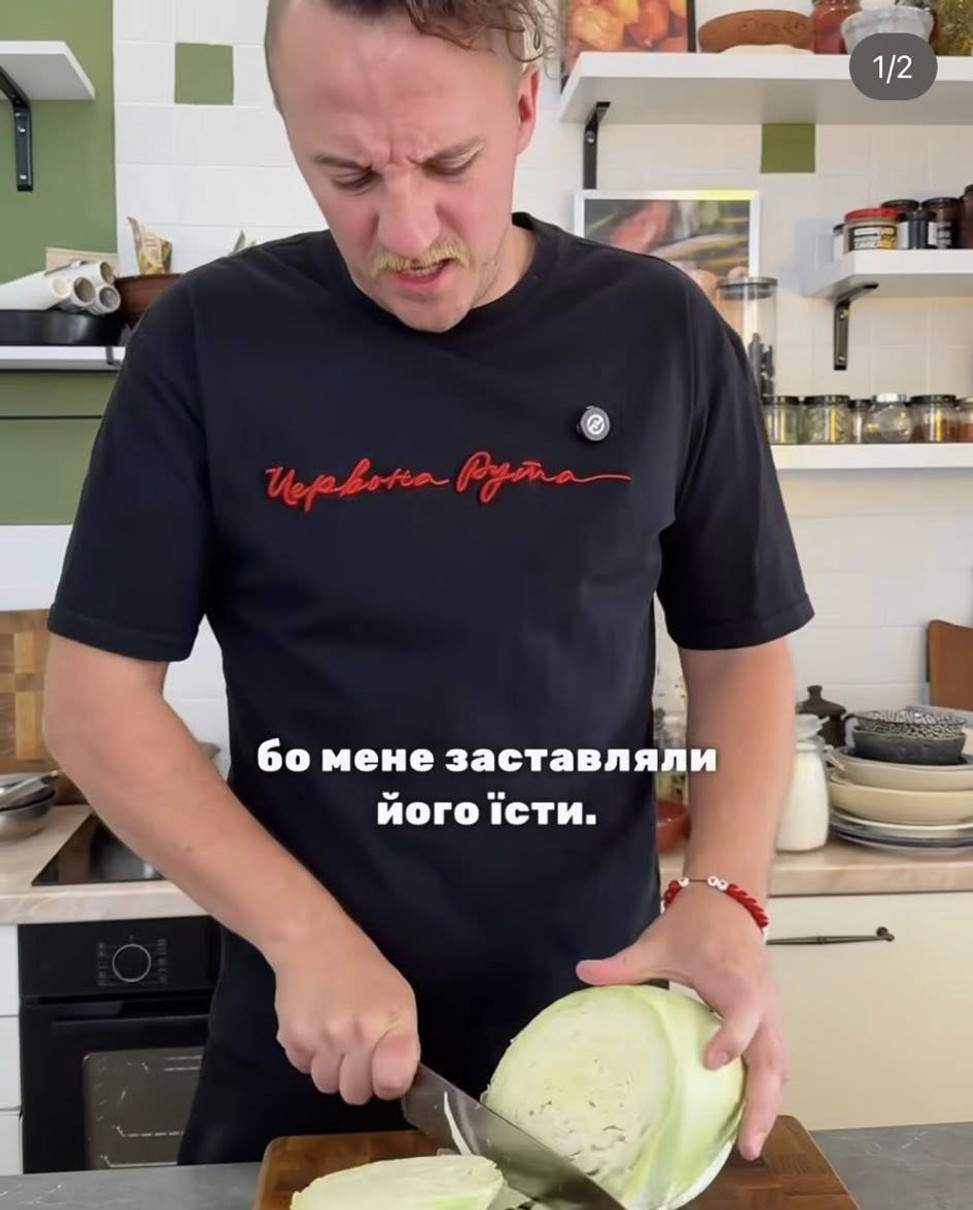 "Я ненавидів капусняк все своє дитинство, бо мене заставляли його їсти. Я їв його на різних ритуальних подіях, це був якийсь жах", - із огидою пригадав Євген у Instagram.