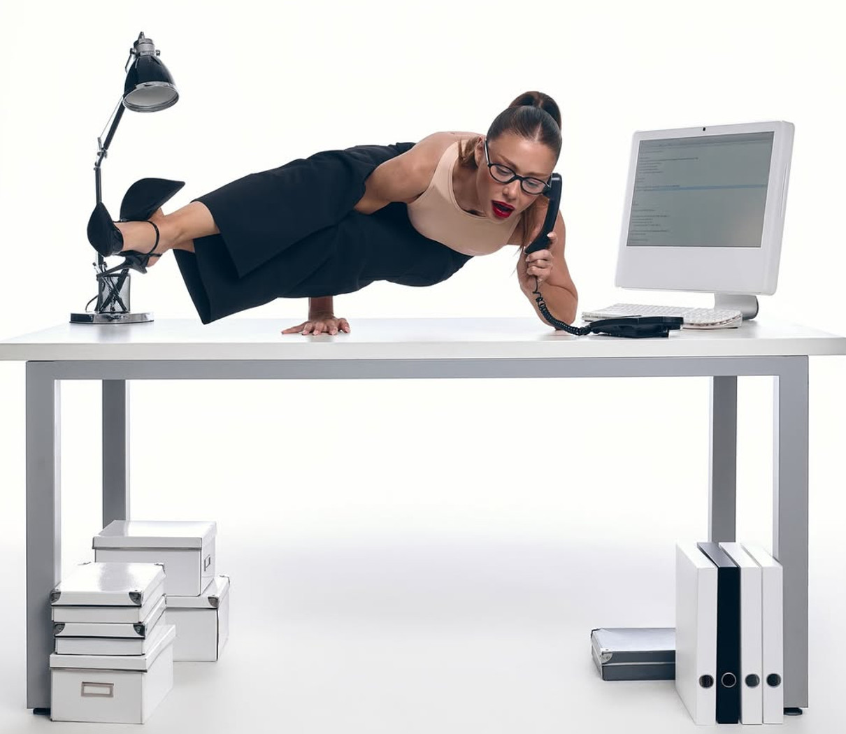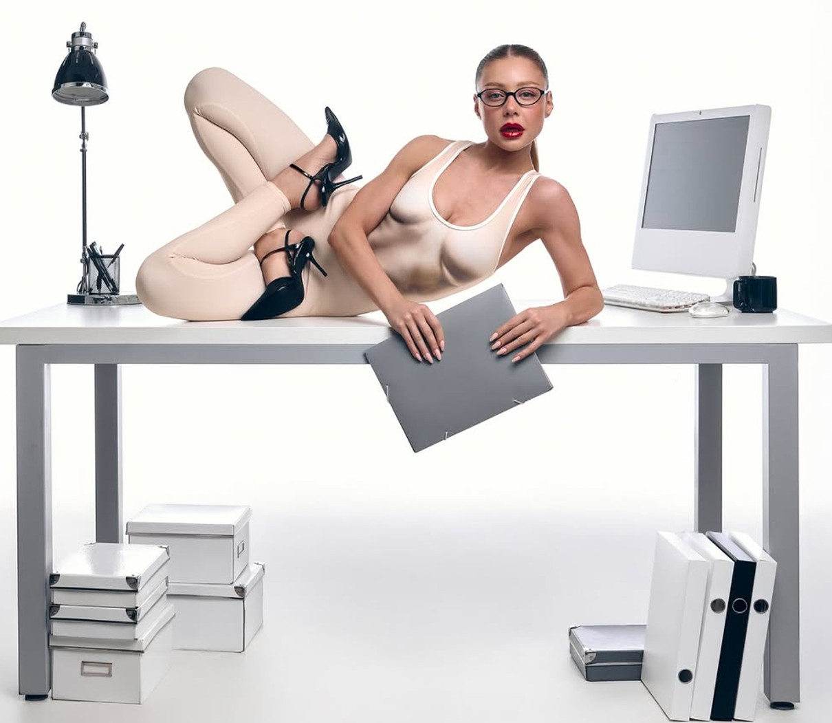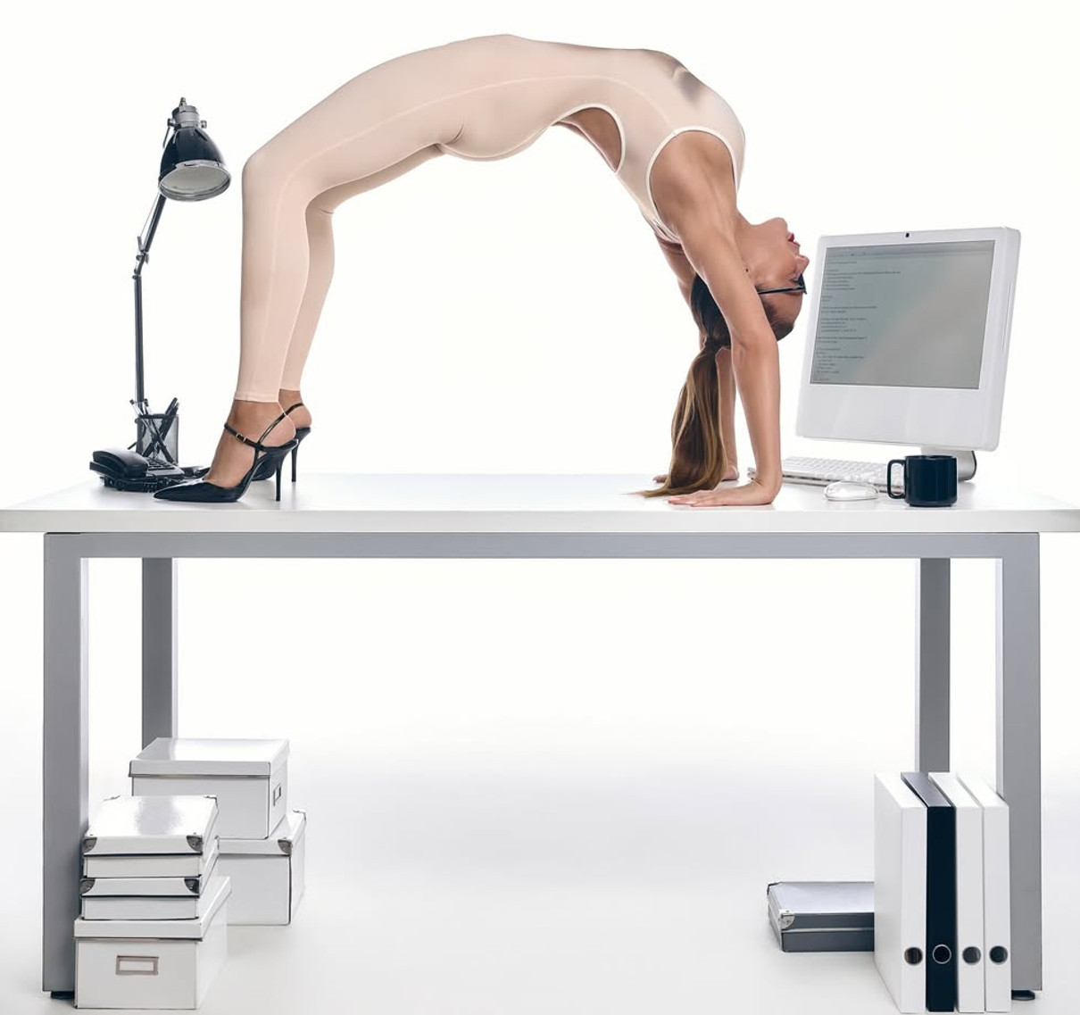 Кароль в комбінезоні з імітацією тіла вразила йога-асанами на офісному столі. Фото 3 декабря 2025