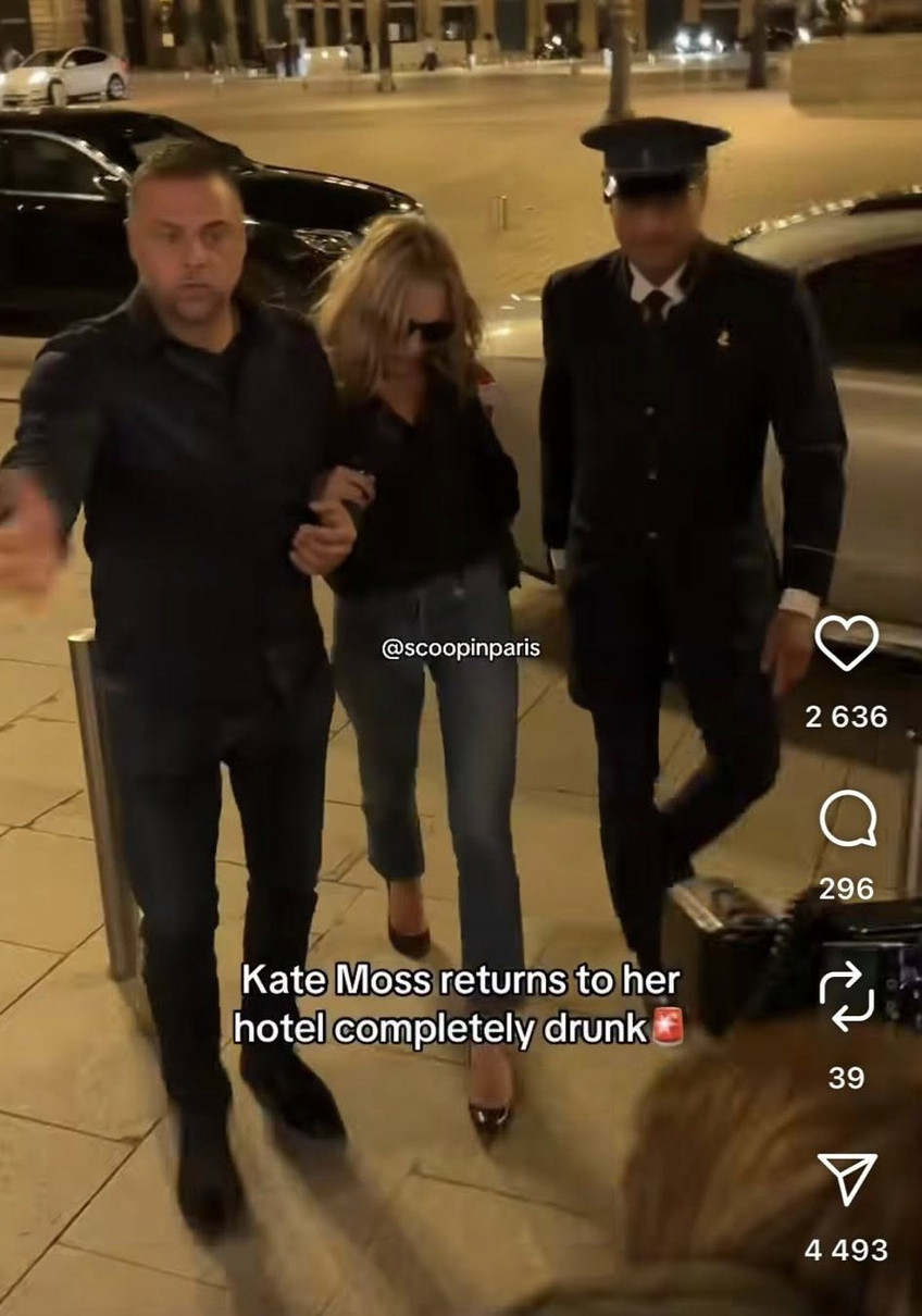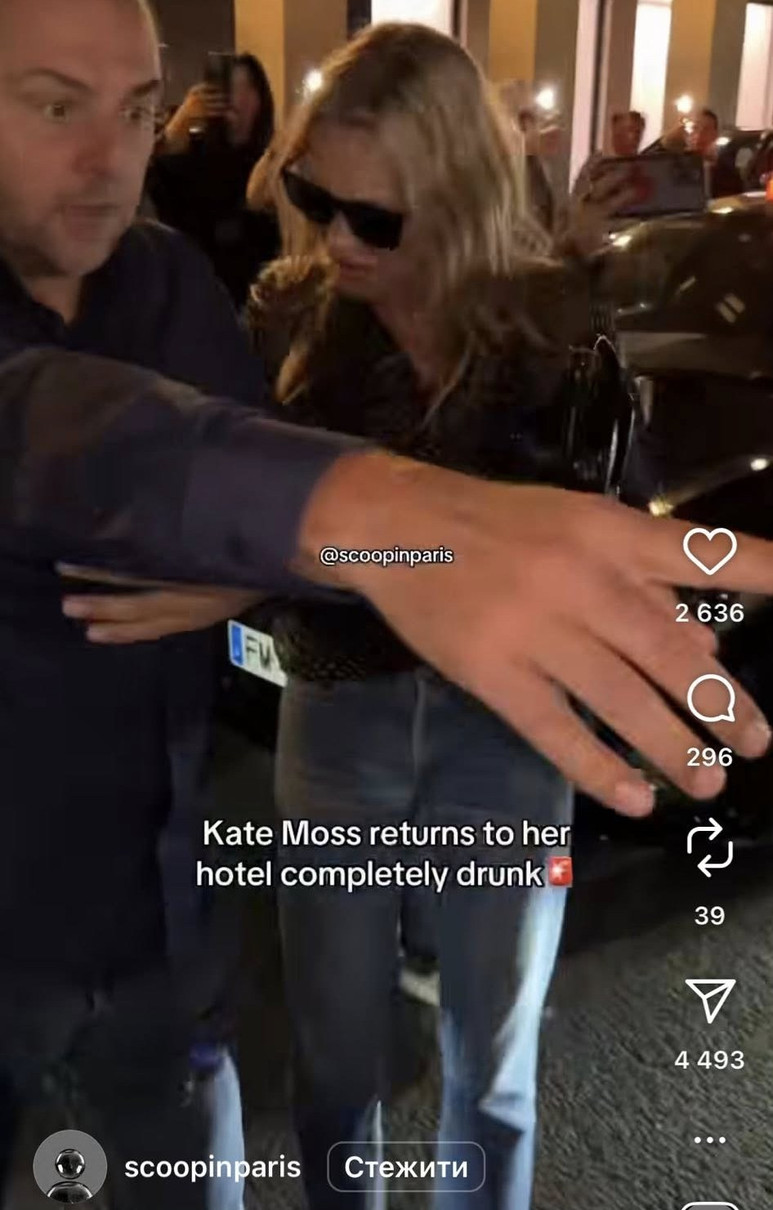 "Кейт Мосс повертається до свого готелю геть п'яна", - відео з таким підписом завірусилося в TikTok та Instagram.