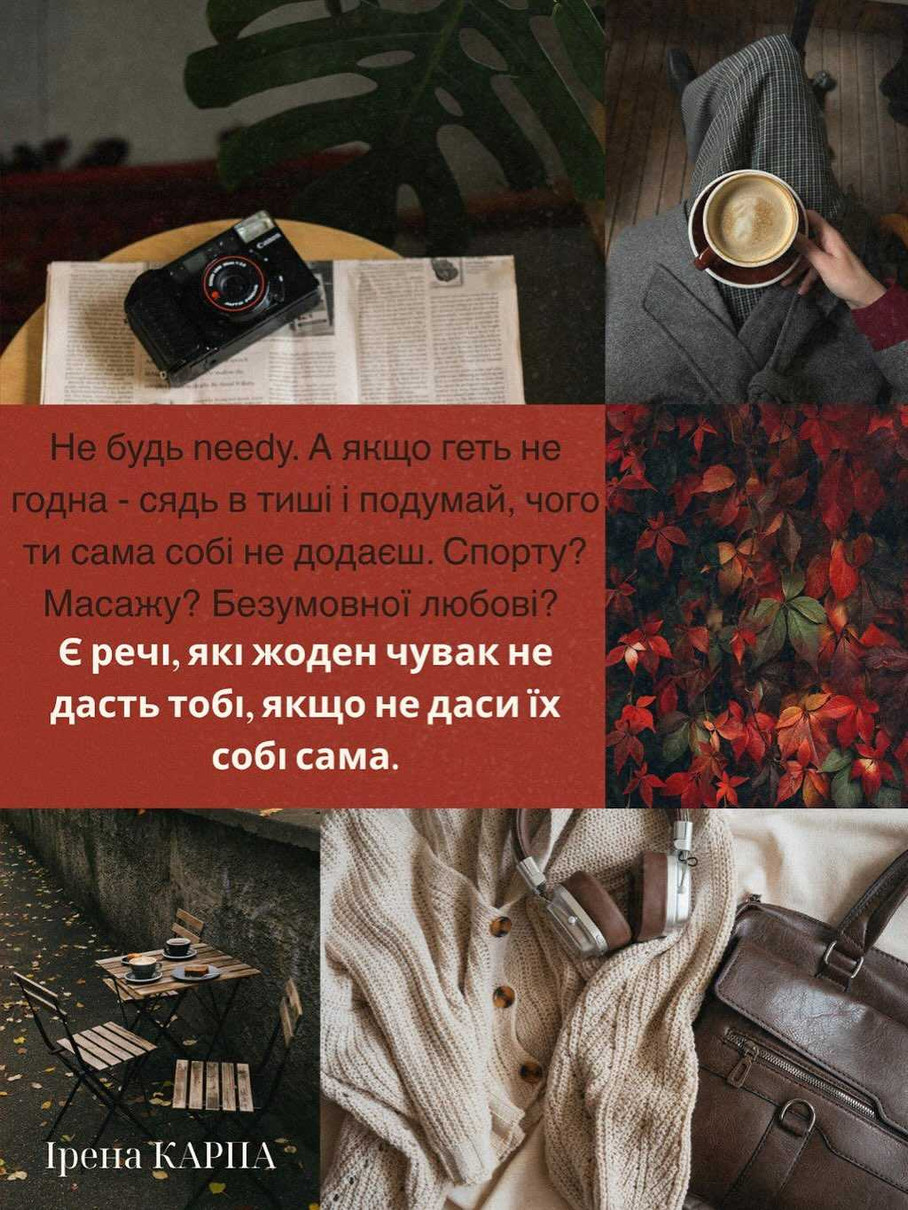 Письменниця та співачка Ірена Карпа у Instagram поділилася вайбовими осінніми фотографіями, а ще порадами: що робити, якщо хлопець розбив тобі серце.