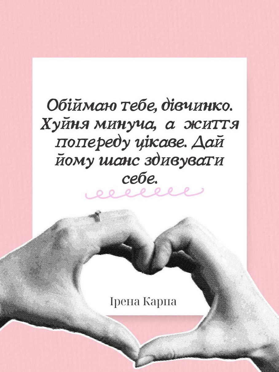 "Обіймаю тебе, моя дівчинко. Хуйня минуча, а життя попереду цікаве. Дай йому шанс здивувати себе", - резюмувала Карпа.