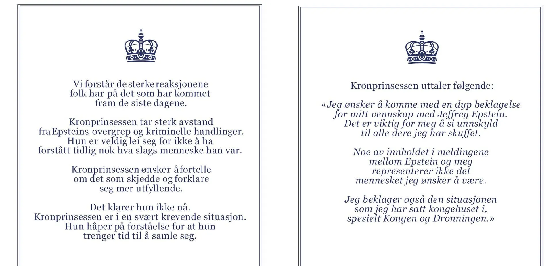 У заяві також наголосили, що через публікацію нових "файлів Епштейна" Метте-Маріт перебуває у дуже складній ситуації. Їй потрібен час, аби зібратися з думками та розставити всі крапки над "і" в неприємній ситуації.
