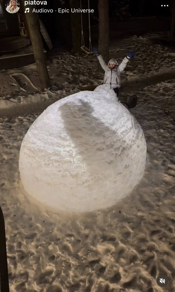 Ексдружина одного з тренерів "Шахтаря" Андрія Пятова, Юлія показала, яку незвичну розвагу для морозних днів вигадала для себе та дітей. Родина звела у дворі іглу, халабуду з льодяних цеглин.