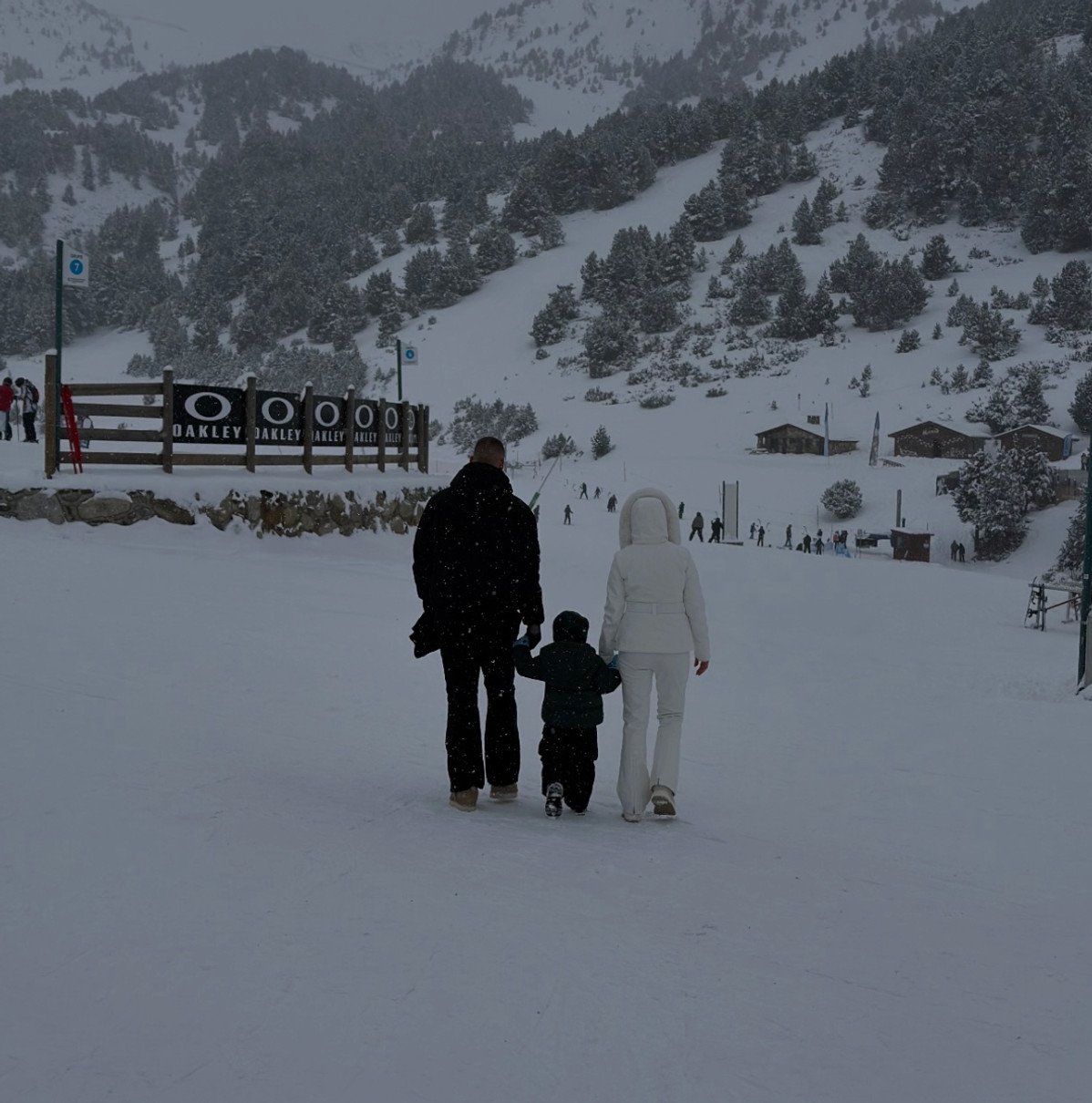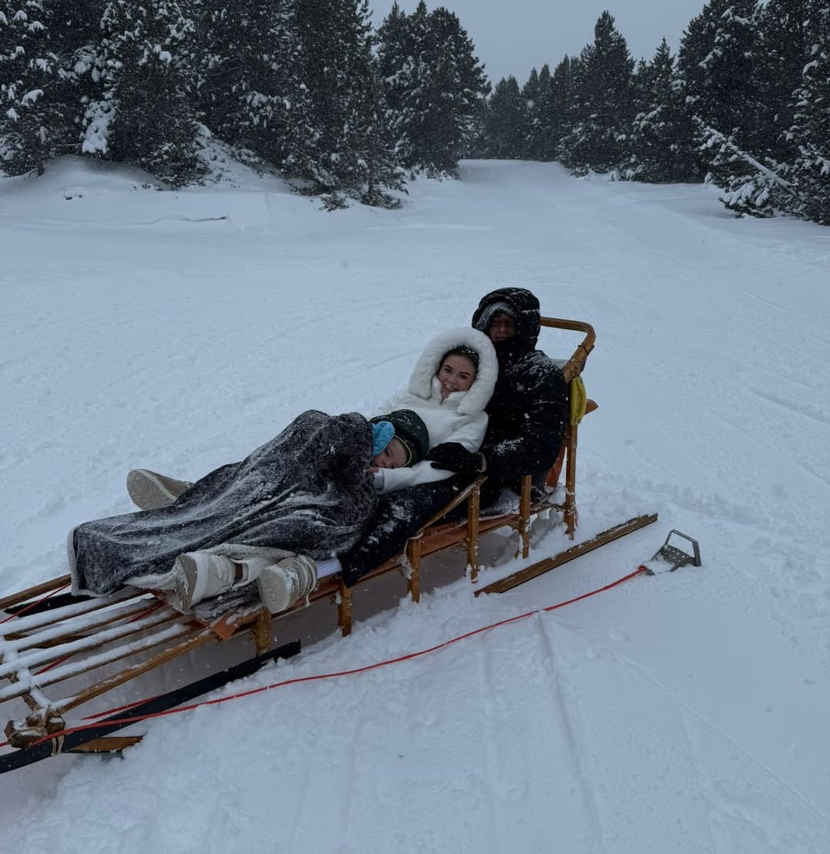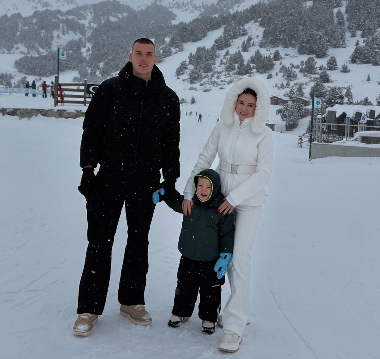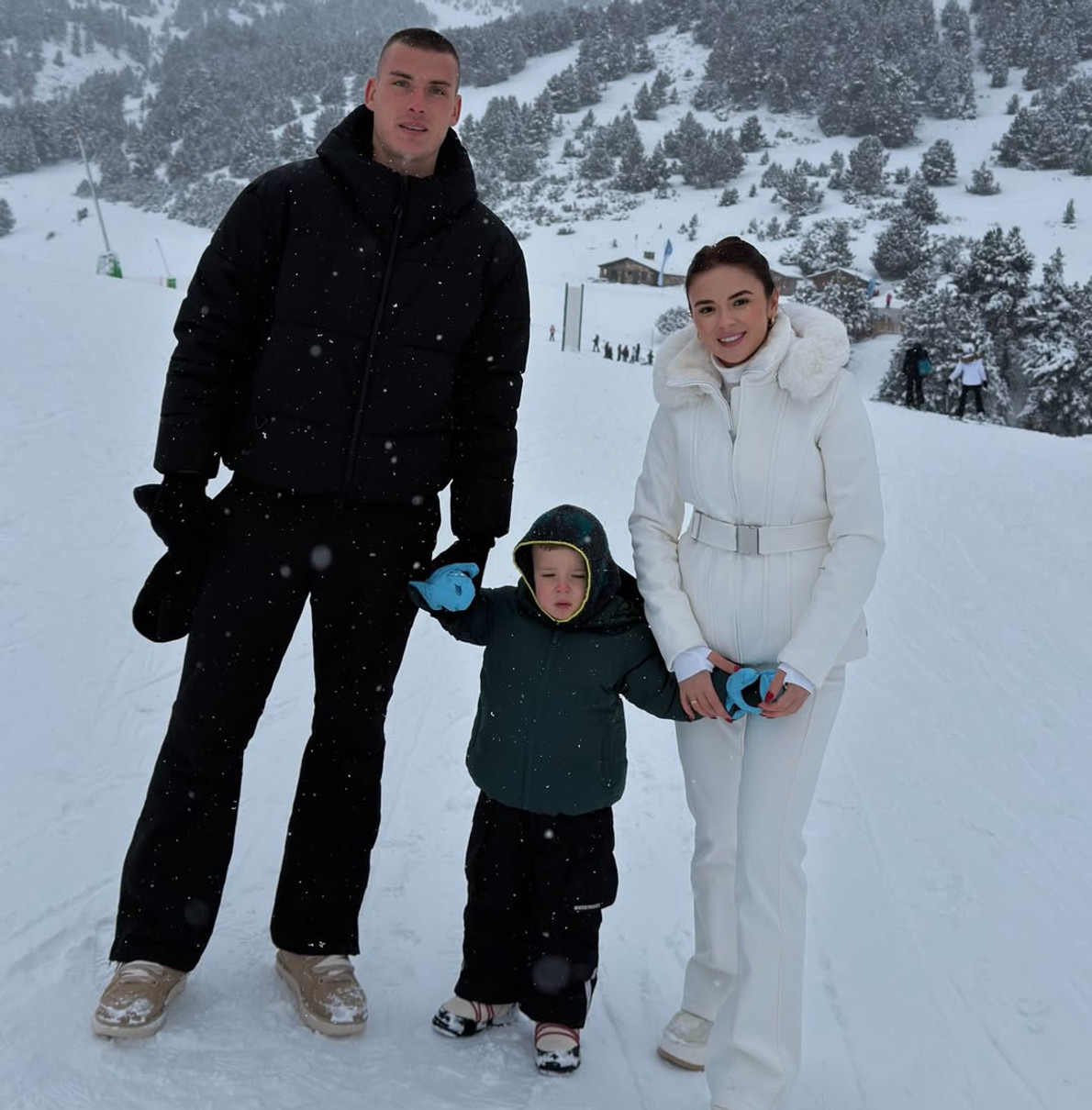 У своєму Instagram 30-річна обраниця спортсмена опублікувала милі сімейні кадри з гірської долини Інклес, що в Андоррі. На фото родина у теплих костюмах попозувала серед снігу та на санчатах.