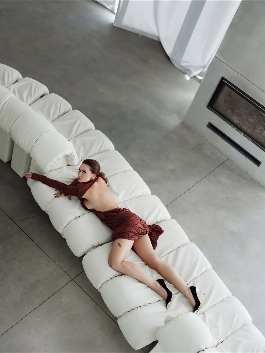Саліванчук оголила спину та ніжки, позуючи на дивані