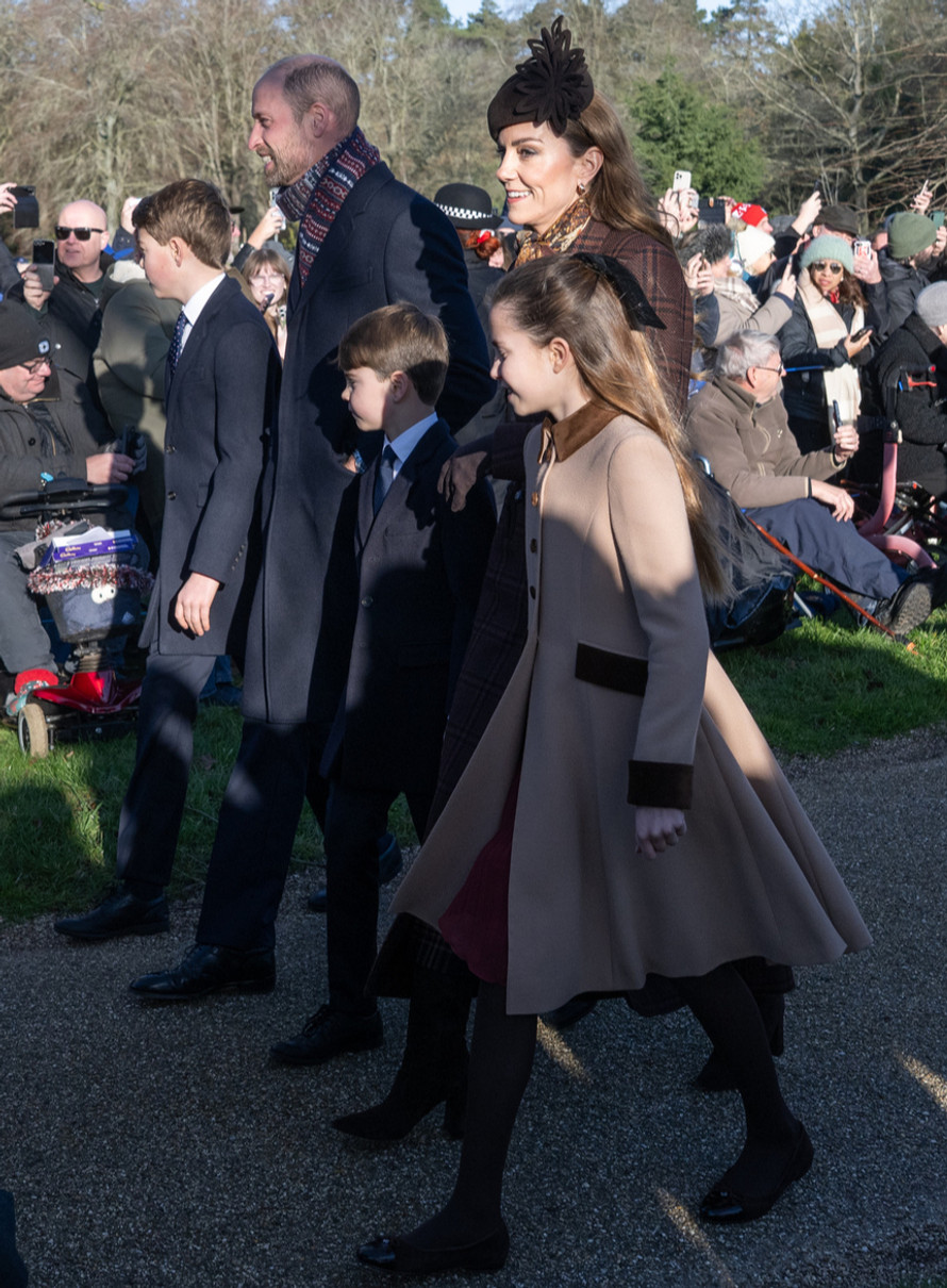 Сини подружжя, 12-річний принц Джордж і 7-річний принц Луї разом з татом обрали для події схожі темно-сині костюми. Тим часом їхня дочка, 10-річна принцеса Шарлотта завітала до храму у бежевому пальті.
