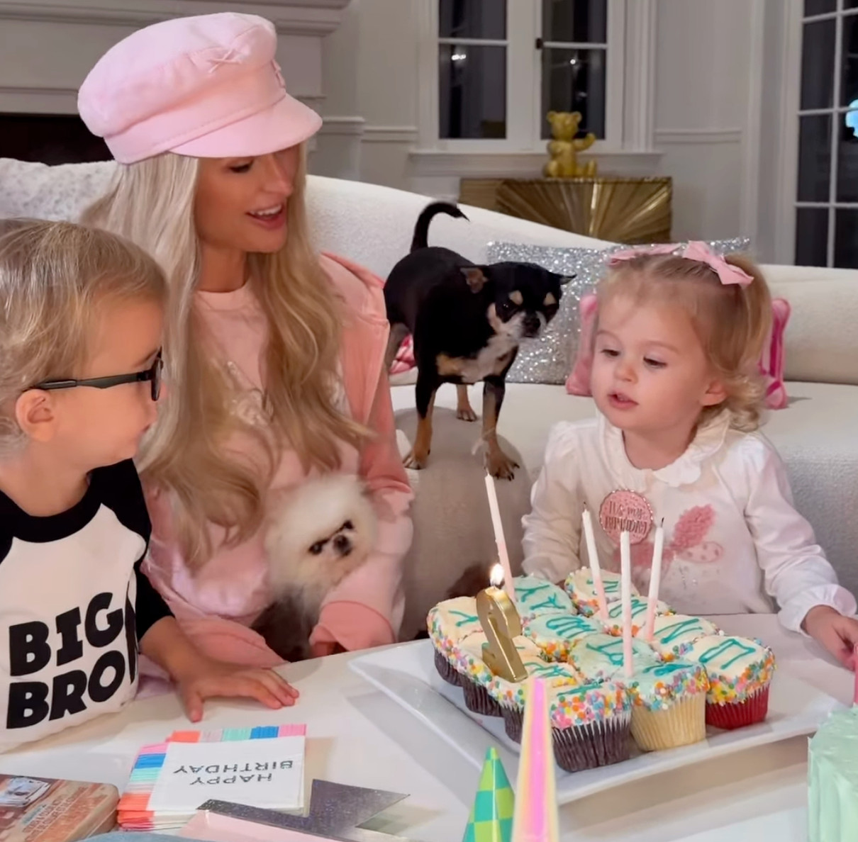 Старший брат іменинниці, а також домашні улюбленці приєдналися до Хілтон для святкових привітань