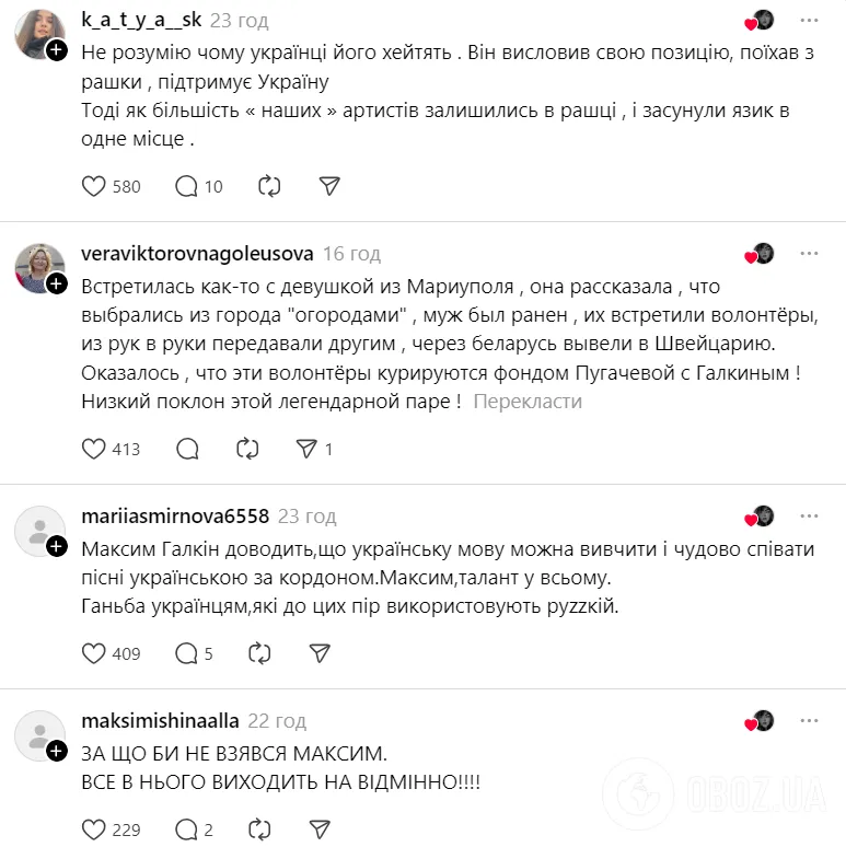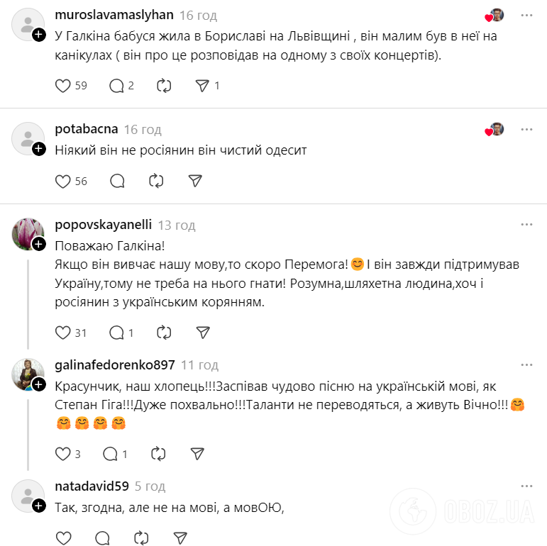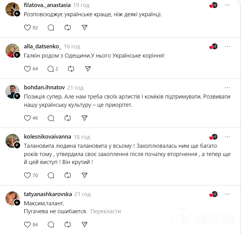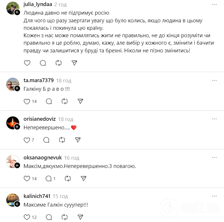 Водночас у коментарях порушували й тему його політичної позиції у 2014 році, коли Галкін публічно підтримував анексію Криму та диктатора Володимира Путіна. Інші користувачі відповідали, що після 2022 року артист відкрито засудив війну, залишив РФ і змінив свою позицію.