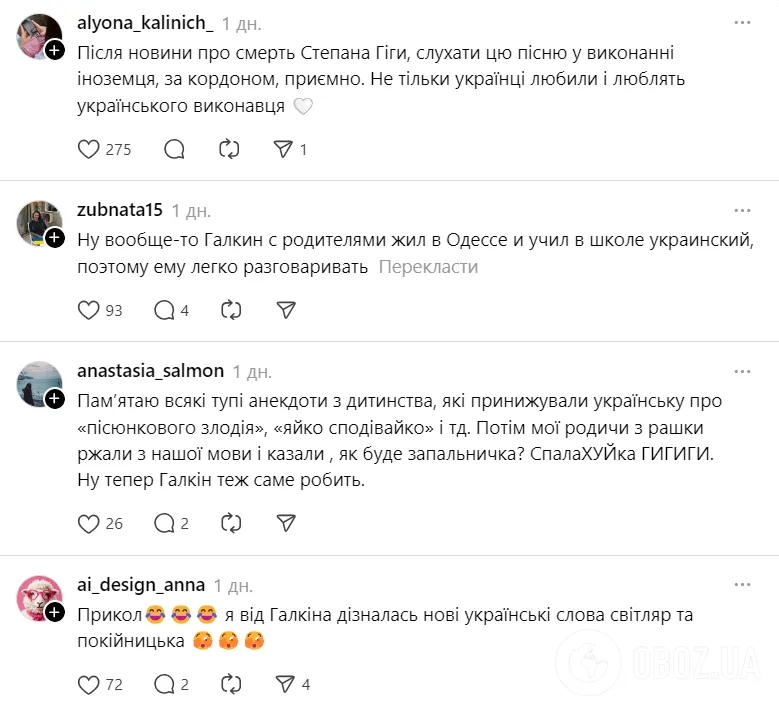 Окремо в мережі згадали біографічні факти з дитинства артиста. Користувачі нагадали, що Галкін певний час жив в Україні, саме тому зараз майстерно володіє українською: у віці семи років його сім’я мешкала в Одесі, де він навчався у перших класах школи та відвідував дитячу ізостудію. Також згадували, що бабуся артиста жила на Львівщині, де він бував у дитинстві.