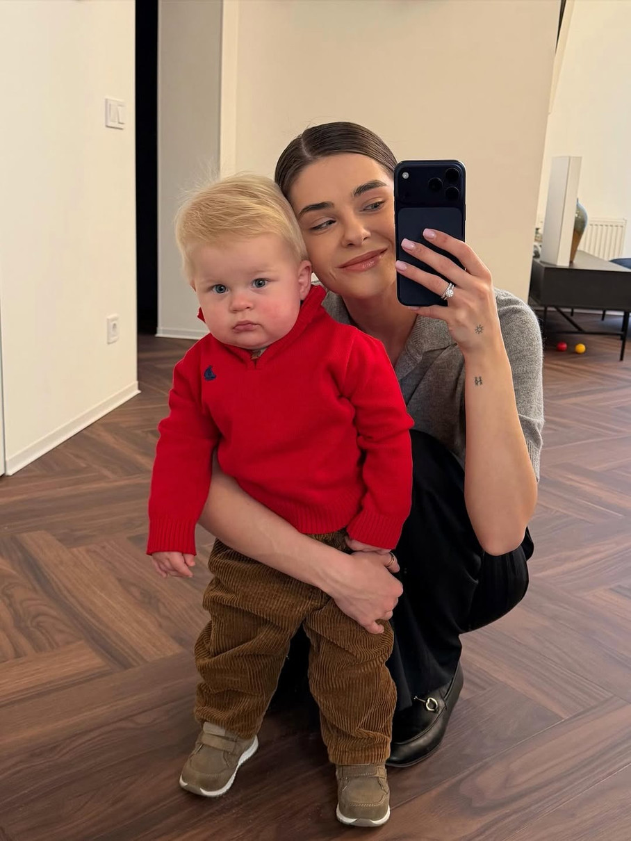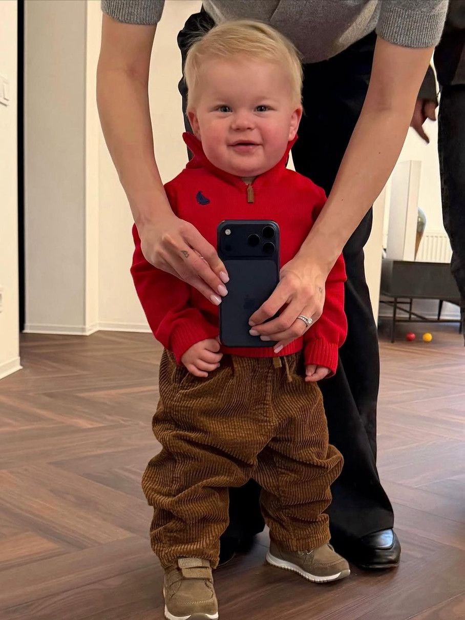 Позуючи для селфі з мамою, малюк уже досить впевнено тримається на ногах.