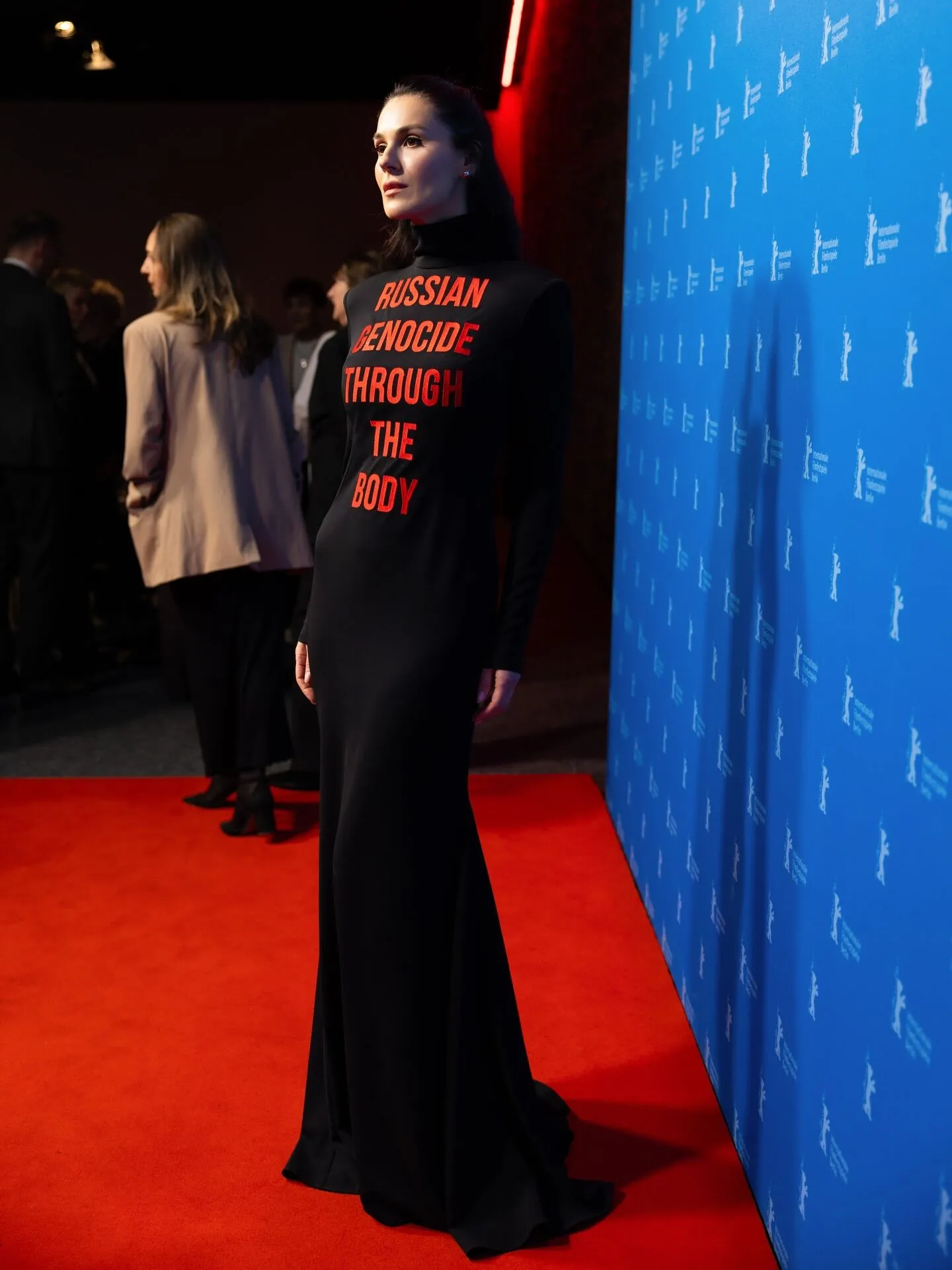 Образ Єфросиніної доповнювали акуратна зачіска з гладко зібраним назад волоссям та стриманий макіяж. Вона позувала на тлі синьої фестивальної стіни Берлінале, не змінюючи серйозного виразу обличчя, що підкреслювало: її меседж неймовірний важливий.