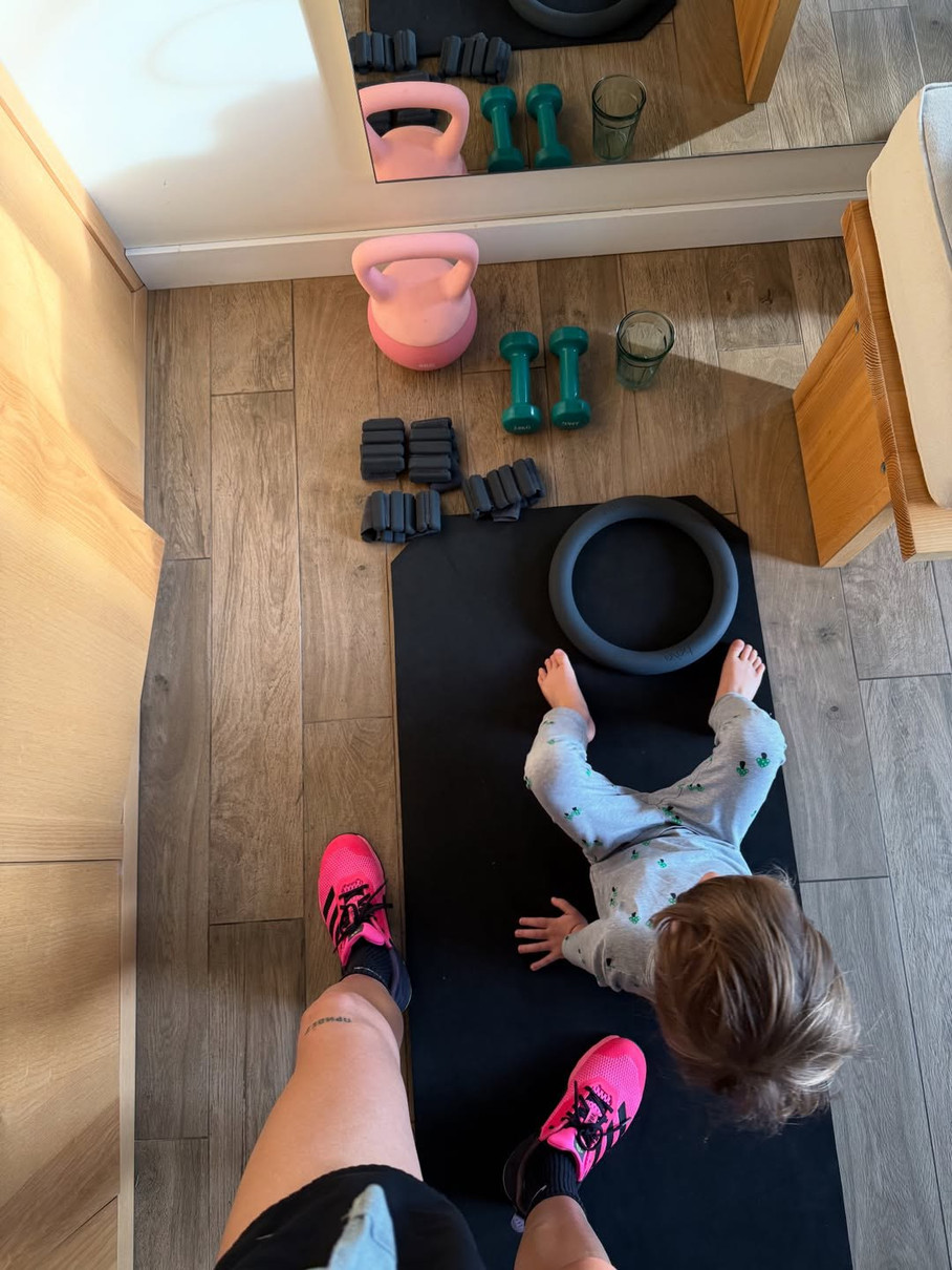 Хлопчик контролює мамине тренування